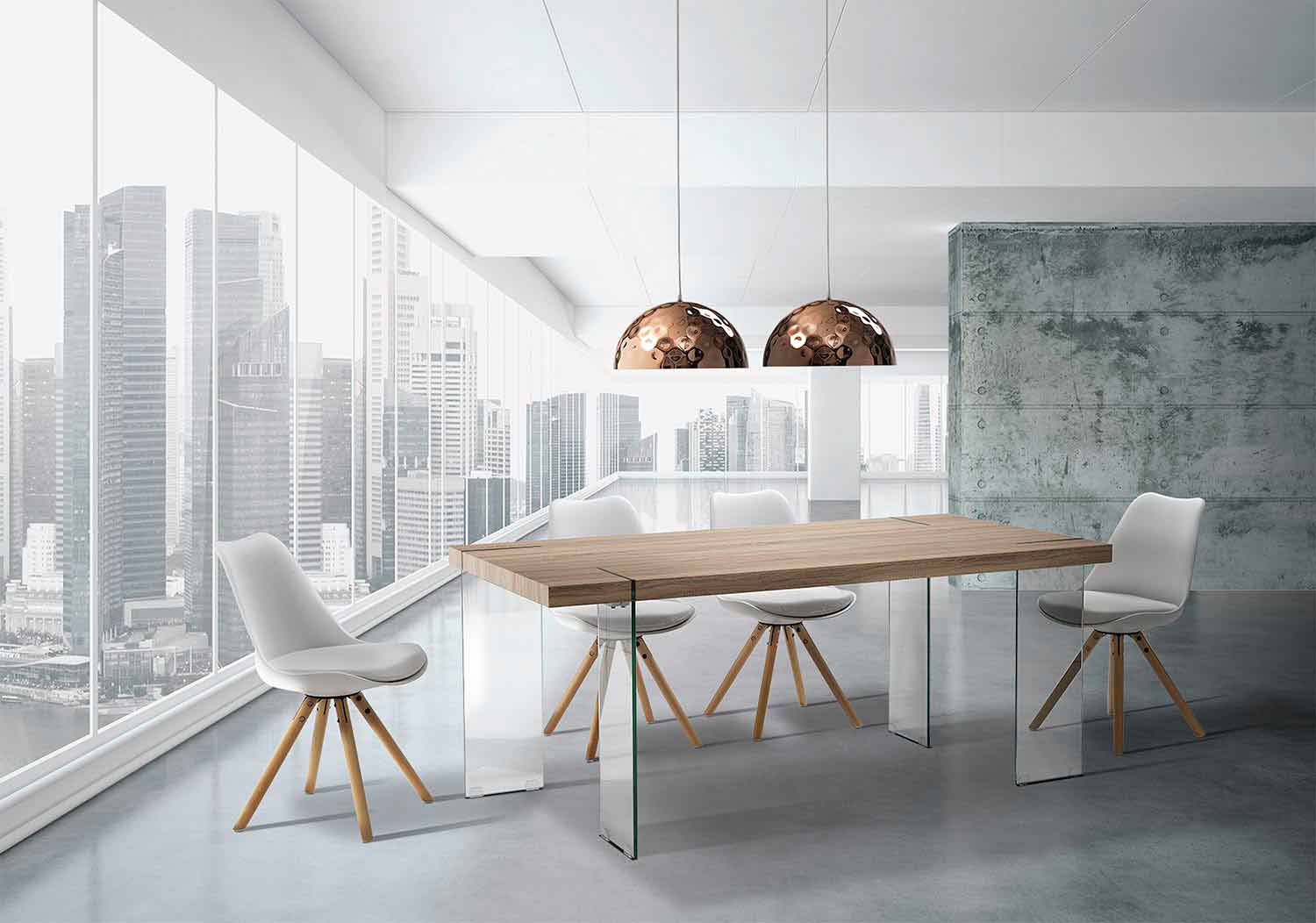 Nowoczesny stół kuchenny z blatem Mdf i podstawą szklaną - Joey