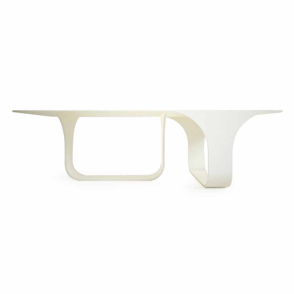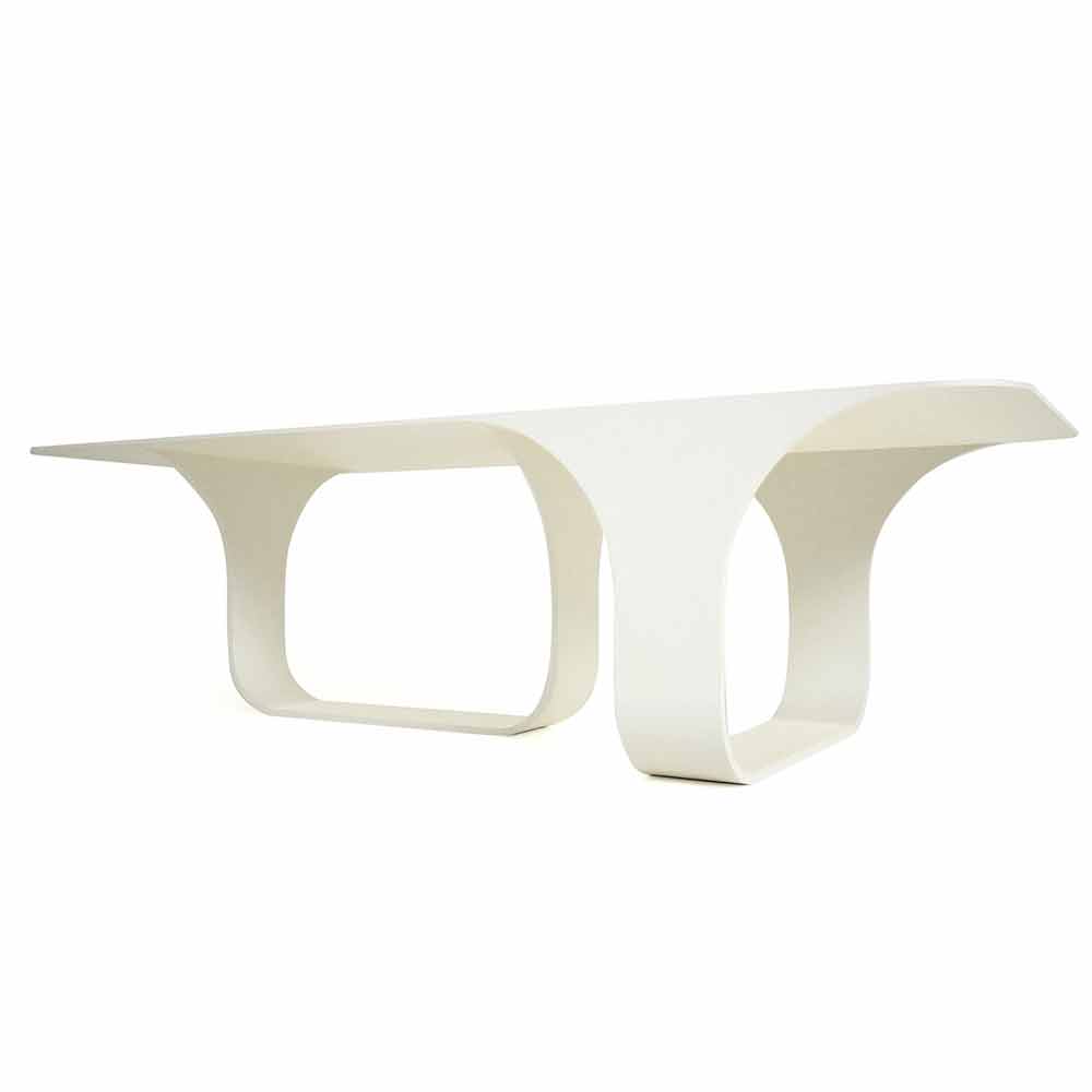 Mirabello to stały stół w kolorze białym Solid Surface® zaprojektowany i wyprodukowany we Włoszech z inspiracją lat 70-tych.