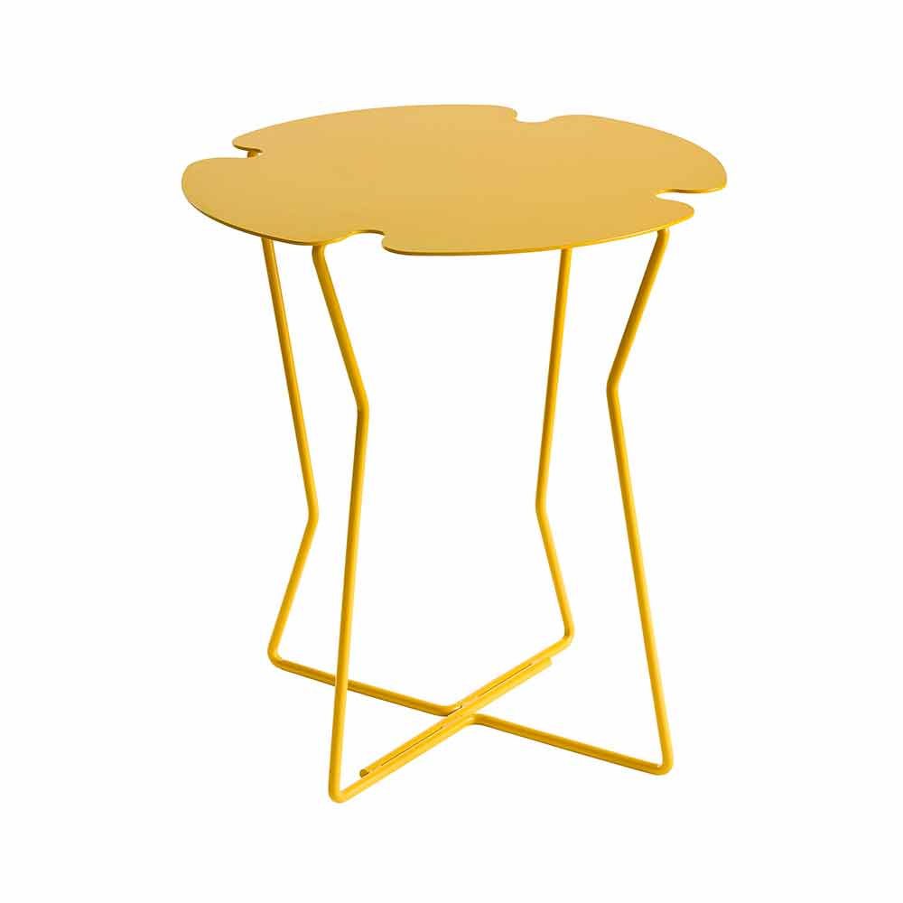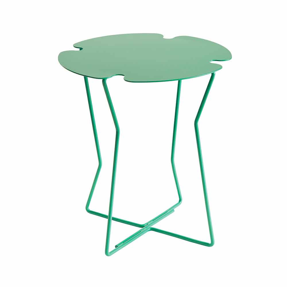 Wykonany z blaszanego blatu i nóg pręta , jego prosta i zaokrąglona geometria jest świeża i solidna, ale jednocześnie dynamiczna jak łodyga kwiatu podążającego za wiatrem.