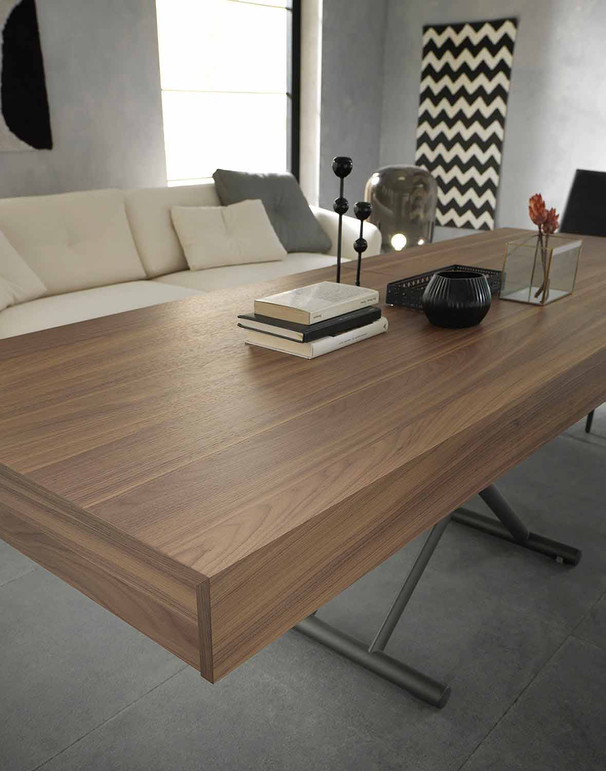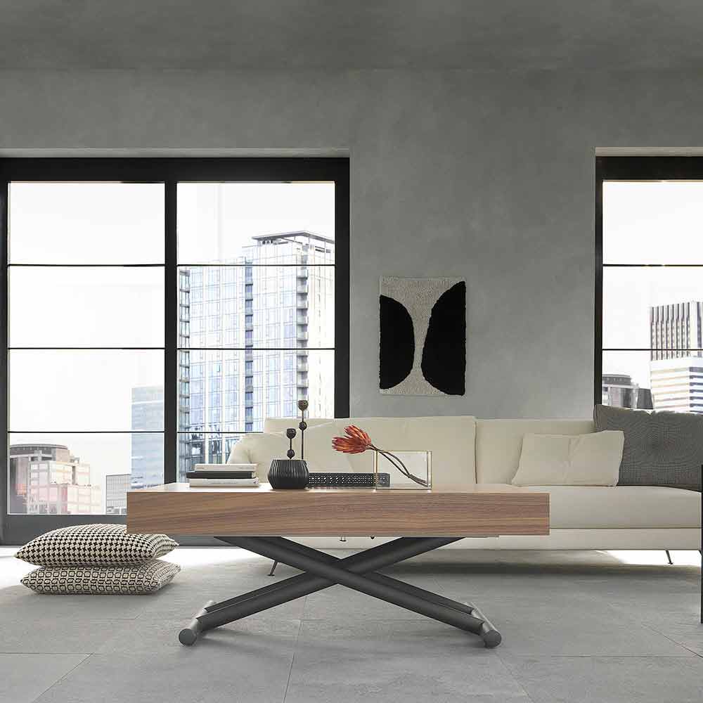 przekształcalny stolik kawowy charakteryzuje się eleganckimi i niezbędnymi liniami, które towarzyszą wszechstronnemu wzornictwu odpowiedniemu do wyposażenia każdego stylu otoczenia.