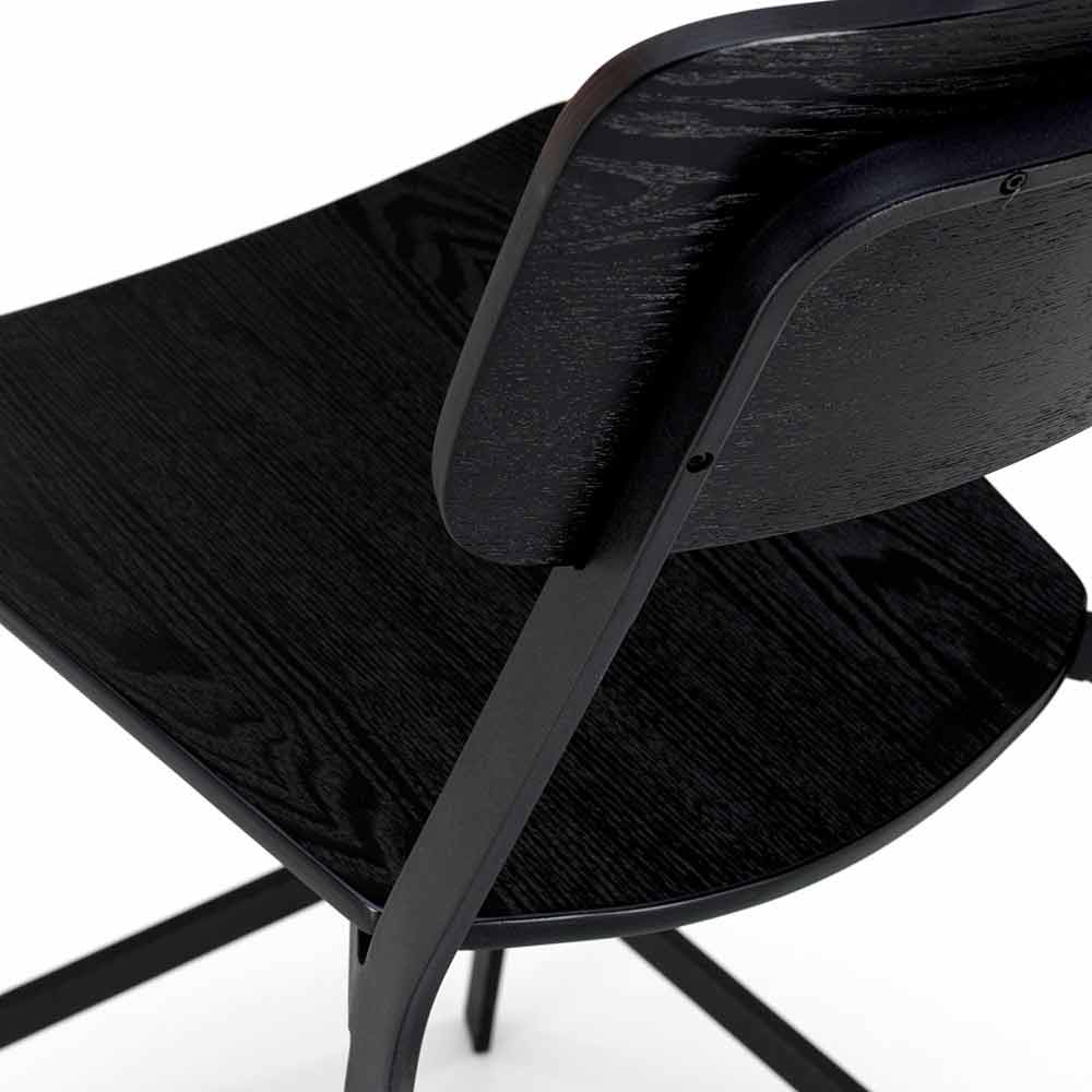 Wykonany z pomalowanej na czarno metalowej konstrukcji oraz z pomalowanym na czarno drewnianym korpusem i siedziskiem.