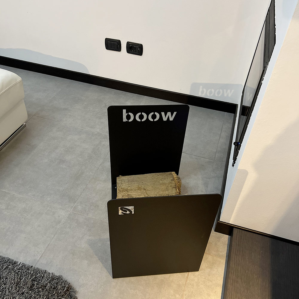 Stojak na drewno kominkowe wykonany z wysokiej jakości nietoksycznej stali malowanej proszkowo. Zaprojektowany, zaprojektowany i wykonany ręcznie we Włoszech, aby podkreślić nie tylko użyteczność samego pojemnika na drewno, ale także jego walory estetyczne.