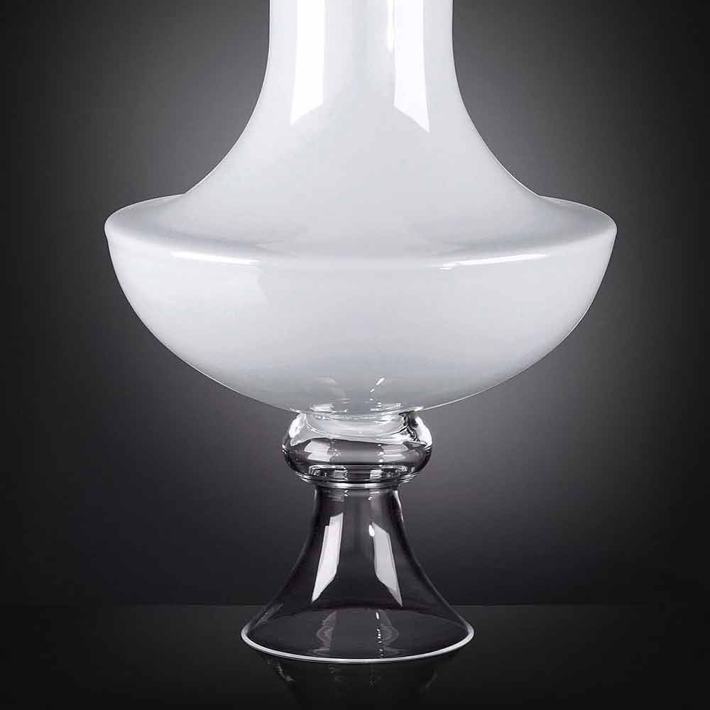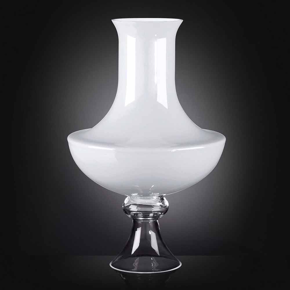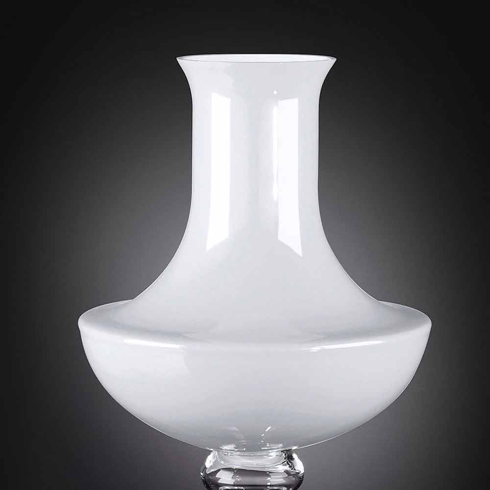 Nowoczesny wazon do wnętrz z białego szkła z przezroczystą podstawą wykonaną w procesie 100% Made in Italy . Dopełnienie charakteryzujące się prostą i czystą estetyką oraz figurą nakreśloną miękkimi kształtami i wijącymi się liniami, które pozwalają na zastosowanie go w każdym otoczeniu o wyrafinowanym stylu, także dzięki ponadczasowej elegancji szkła, wysokiej jakości materiału o wysokiej wartości. . Idealny projekt dla najróżniejszych środowisk, od wyposażenia domu po hotele, restauracje, powierzchnie kontraktowe, spa, ale także jako oprawa imprez i wesel.