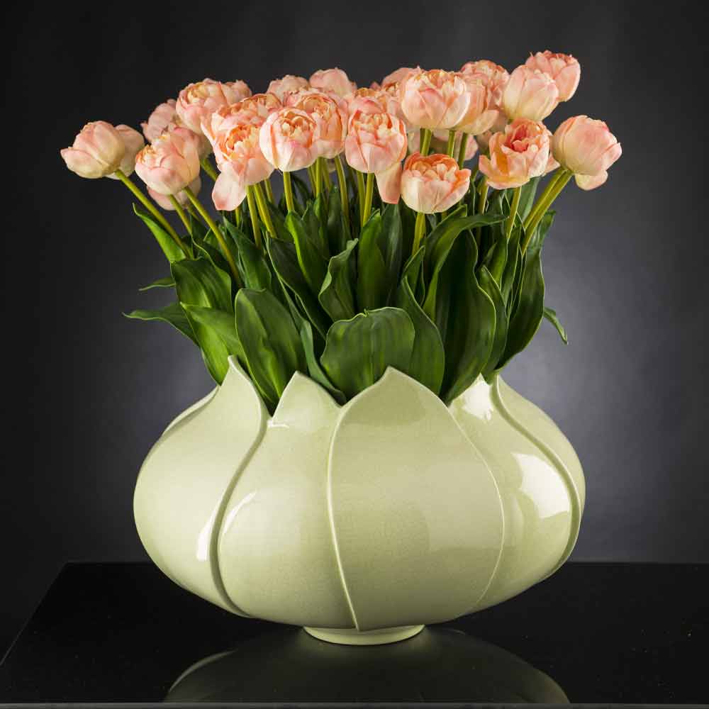 kolorowej ceramiki ręcznie robiony we Włoszech. Wyjątkowo elegancki wzór nawiązujący do kształtów tulipana, stanowiący