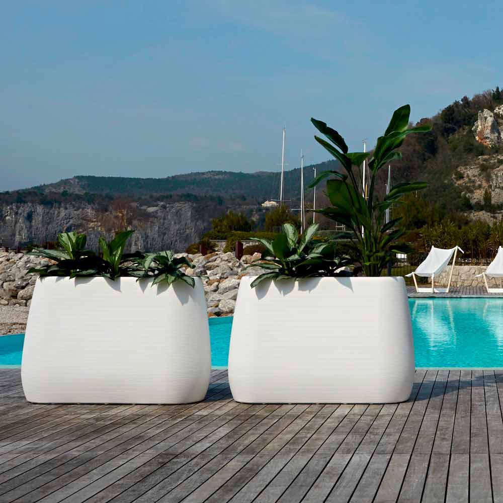 Nowoczesny wazon do wnętrz lub na zewnątrz z tłoczonego białego Poleasy, wykonany we Włoszech, w 3 rozmiarach, 2 sztuki.