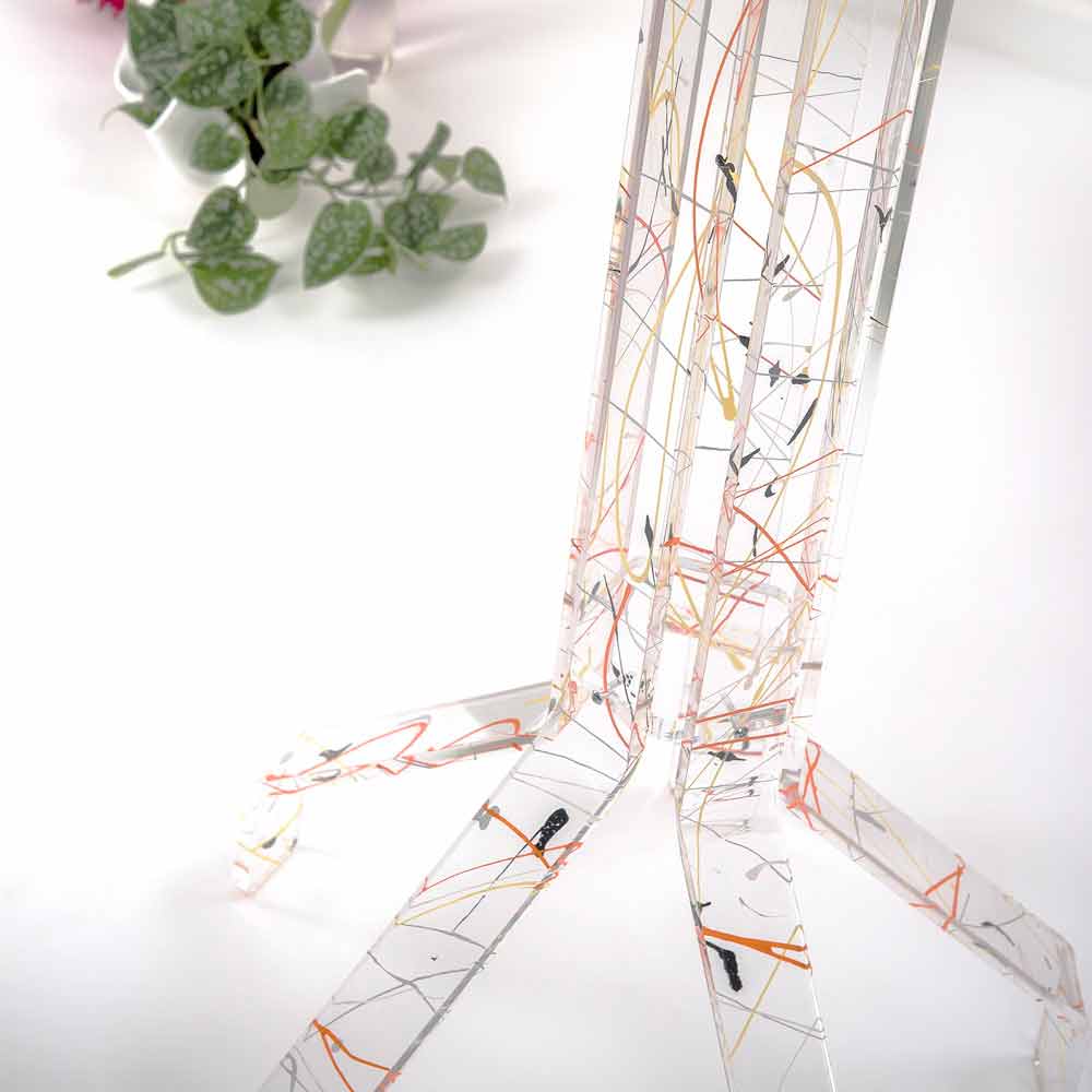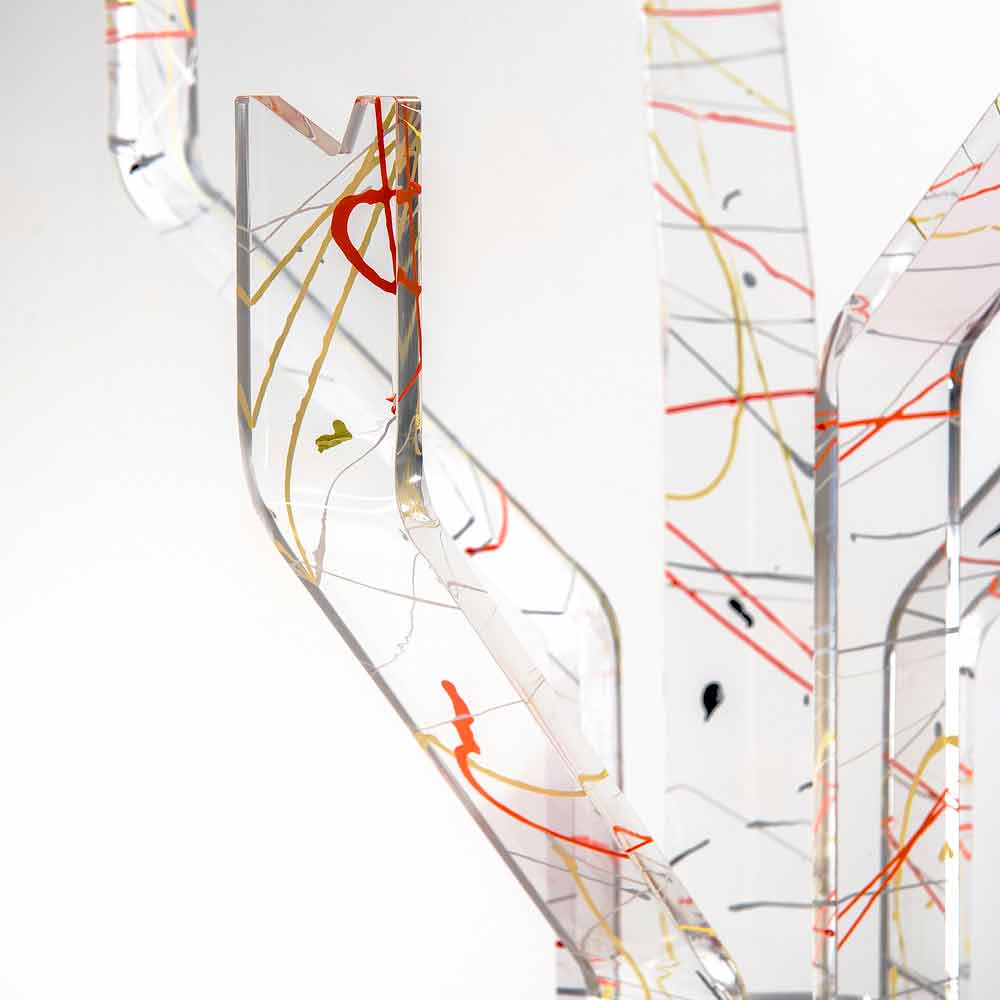 Andrea to 5-ramienny asymetryczny wieszak wykonany w 100% z pleksi PMMA z pierwotnego polimeru z wykończeniem farbą w sprayu, dzięki czemu jest wielokolorowy.