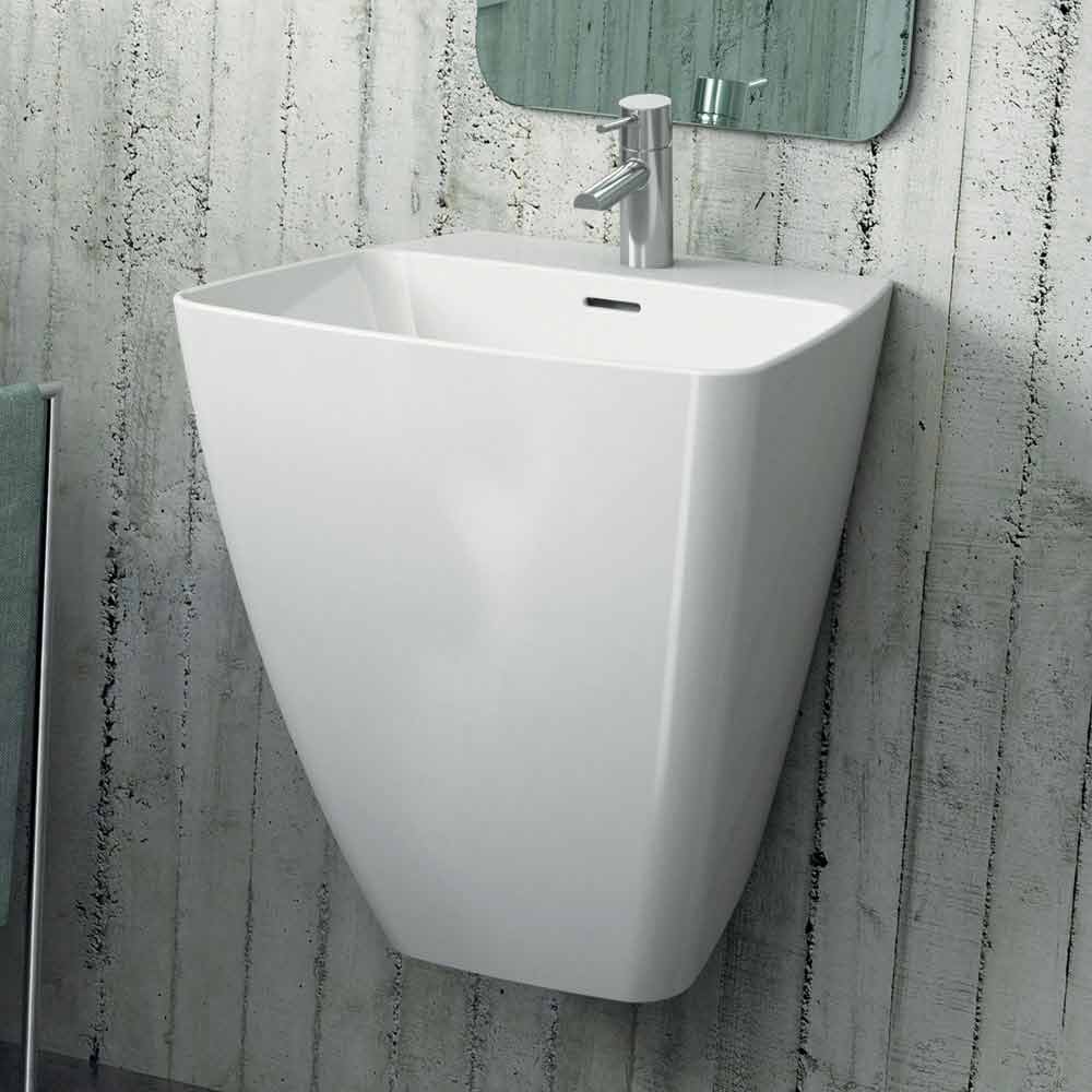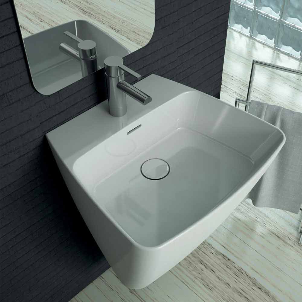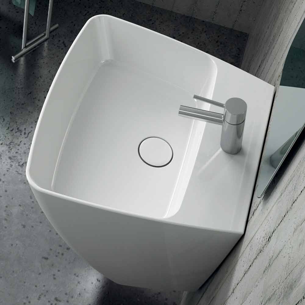Nowoczesna umywalka ścienna w ceramice wykonana we Włoszech, Goran