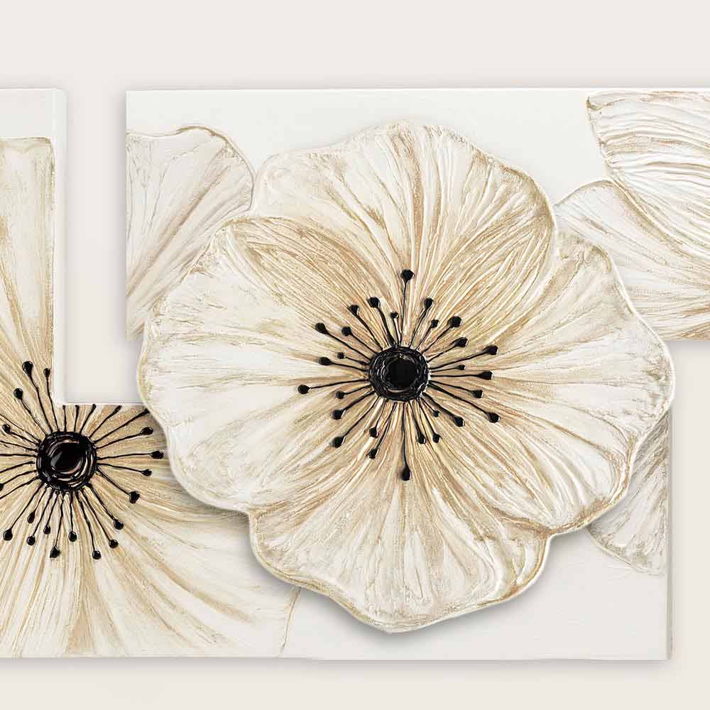Obraz z kwiatami nowoczesny Petunia Piccola by Viadurini Decor. Wymiary: 115x55cm Kwiatowa kompozycja na płótnie, ręcznie zdobione, szczegóły struktury materiału żywicznego, na podwójnej L z centralnym elementem wypukłym, błyszczące wykończenie. Struktura podwójnej L zdobione ręcznie, ze szczegółami żywicy, srebrnym liściem z wypukłym elementem centralnym , błyszczące wykończenie.