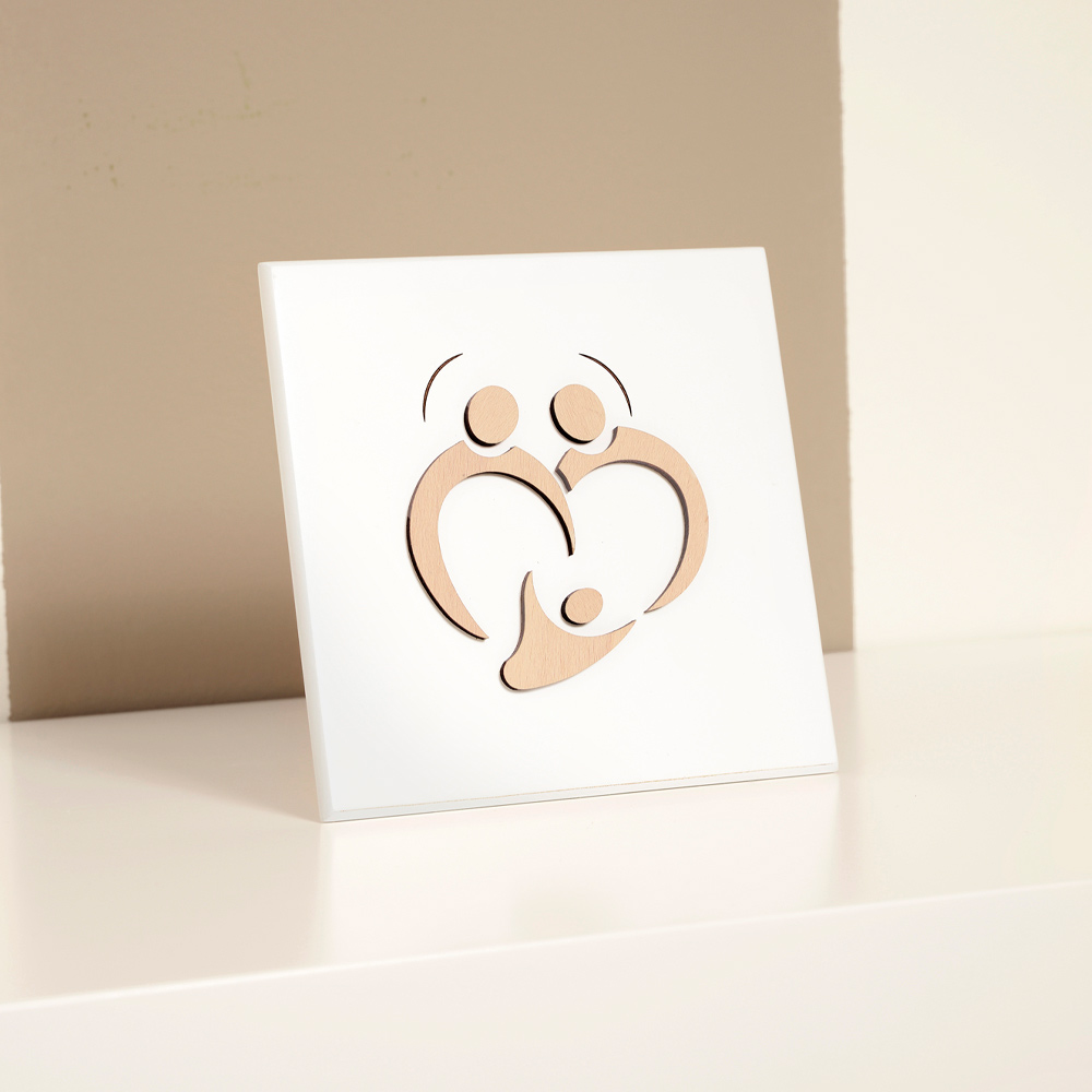 Ten obraz jest wynikiem włoskiego rzemiosła, postacie są rysowane ręcznie , a następnie malowane światłem wiązki laserowej, bez żadnych odpadów iz poszanowaniem środowiska. Minimalistyczny i esencjalny styl chce wydobyć tylko słodycz, która pochodzi z przedstawienia rodziny.