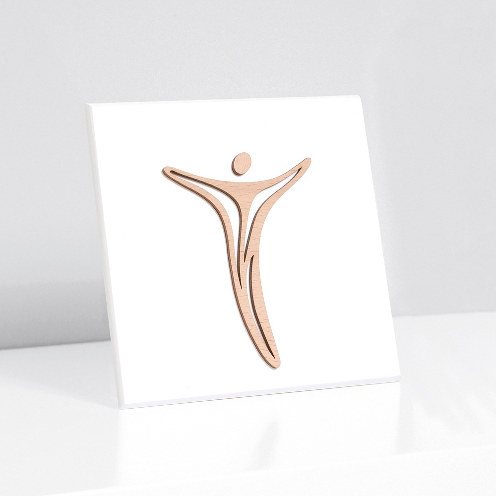 Obrazek sakralny z nałożonym krzyżem z naturalnego drewna . Lakierowany na biało drewniany panel ze stopką i otworem do zawieszenia na ścianie.