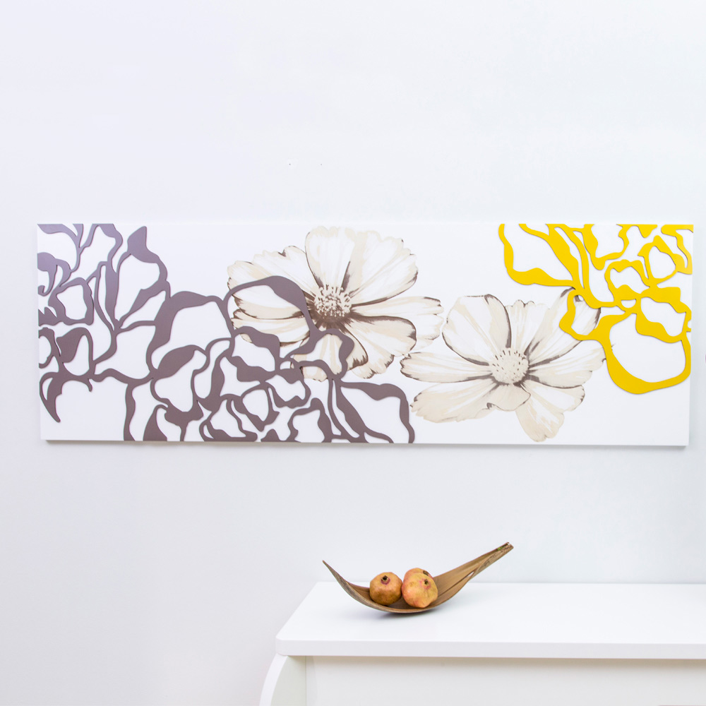 Dekoracyjny panel przedstawiający kwiaty i piwonie z własnymi niuansami i abstrakcyjnymi detalami w różnych kolorach .