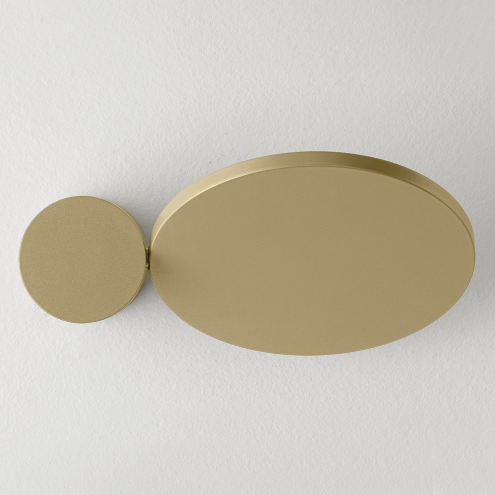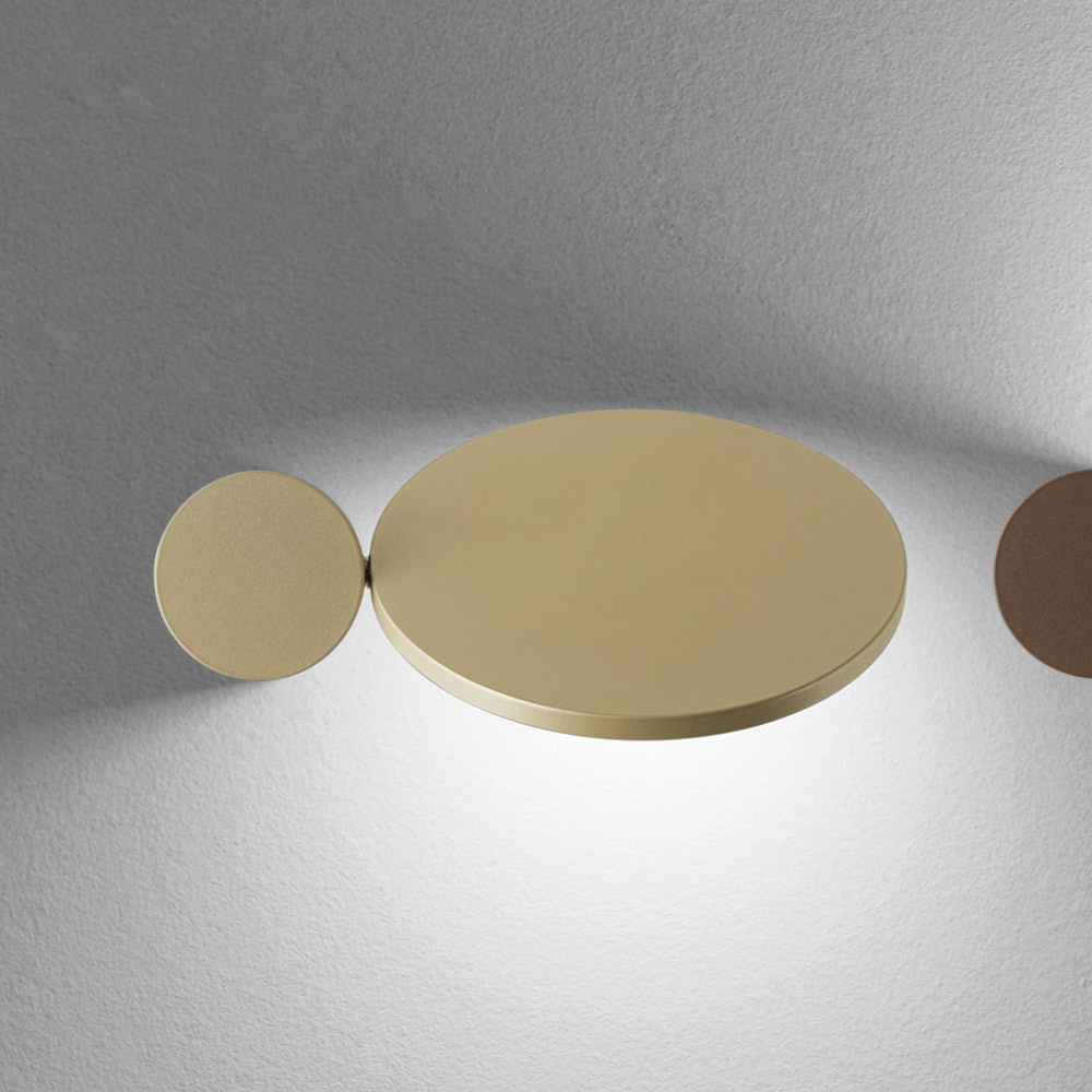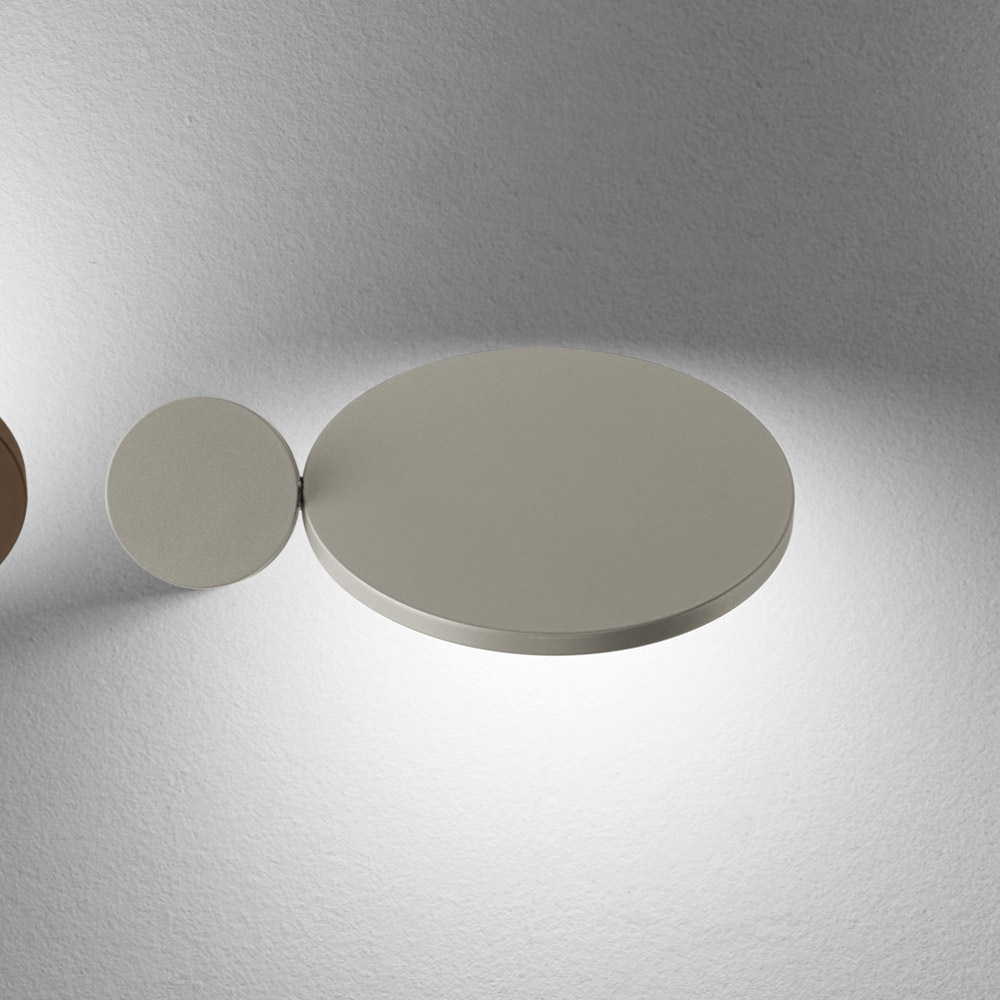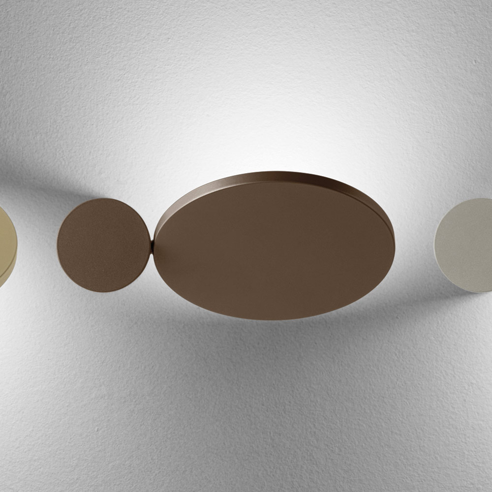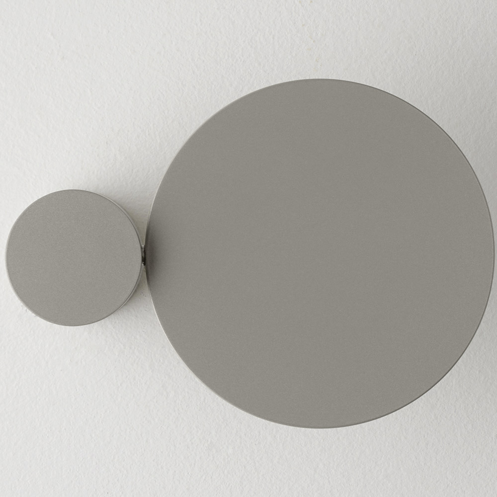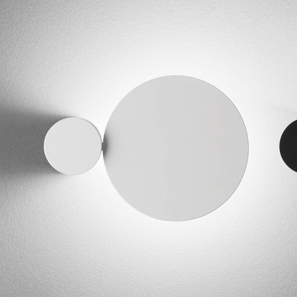 Ten kinkiet to prawdziwe, świetliste dzieło sztuki , łączące w sobie elementy graficzne i dekoracyjne . Złożony z podstawowych kształtów geometrycznych , bawi się nakładającymi się na siebie krążkami i owalami , które po włączeniu tworzą na ścianie delikatny i dramatyczny efekt świetlny.