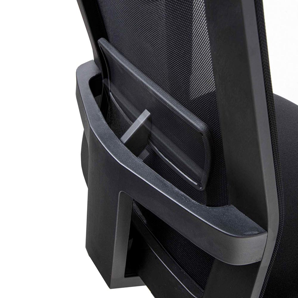 Krzesło obrotowe dla kadry kierowniczej z podnośnikiem gazowym, z czarnej tkaniny technicznej.