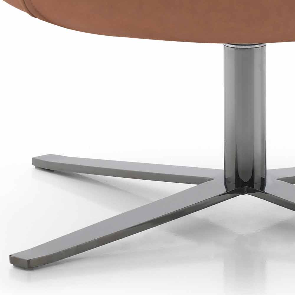 Obrotowy fotel ze skóry i tkaniny z metalową podstawą Made in Italy.