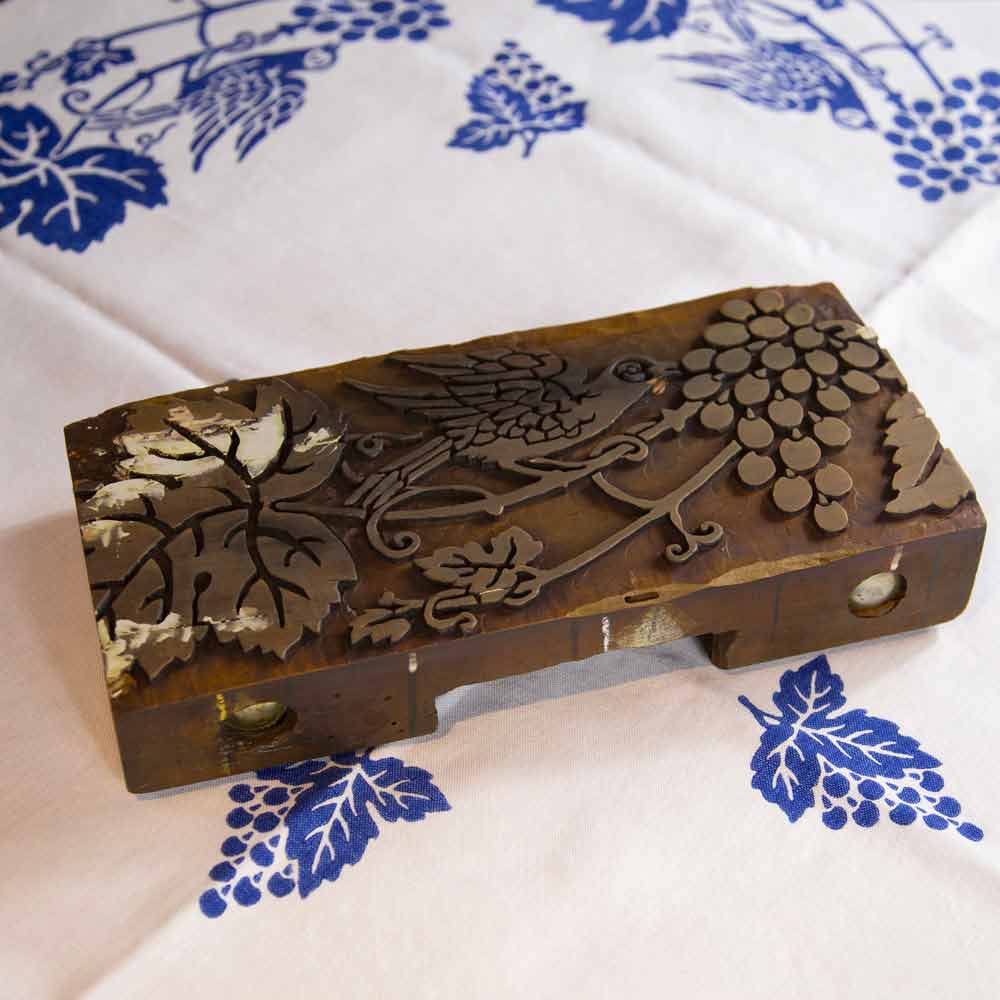 - Drukowanie ręczne : wielka umiejętność w tej fazie, która odbywa się ręcznie przy użyciu drewnianych form, w których ręcznie grawerowano wzór. Kolor rozprowadza się na podkładce, w której forma jest zanurzana, a następnie umieszczana na tkaninie, a ciężkim drewnianym młotkiem jest uderzana o formę, aby wywrzeć wrażenie na tkaninie.