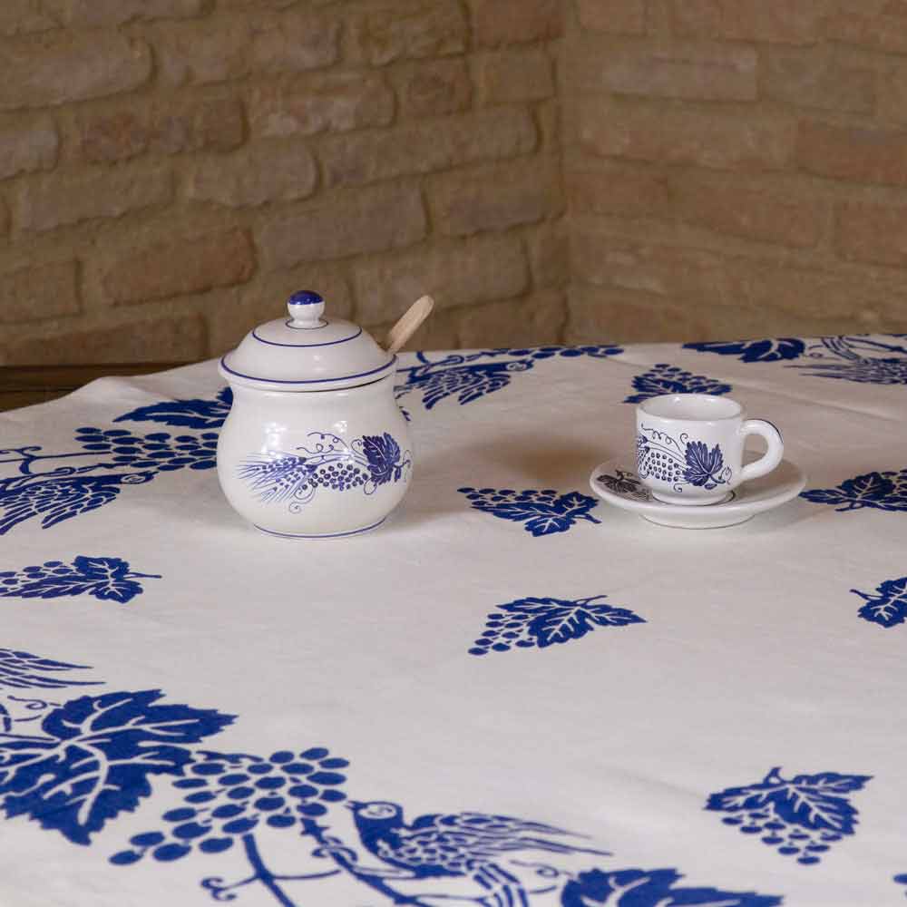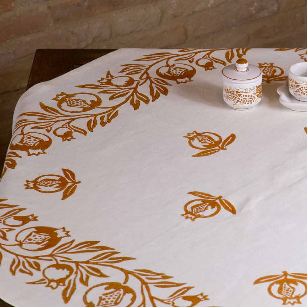 - Dostępne 2 nadruki : rdza ze starożytnym wzorem granatu , symbolem obfitości i dobrobytu; Niebieski, ze starożytnym tradycyjnym rysunkiem ptaka, który dziób winogrona.
