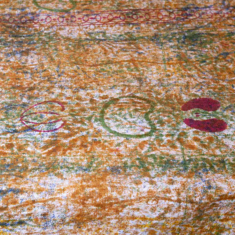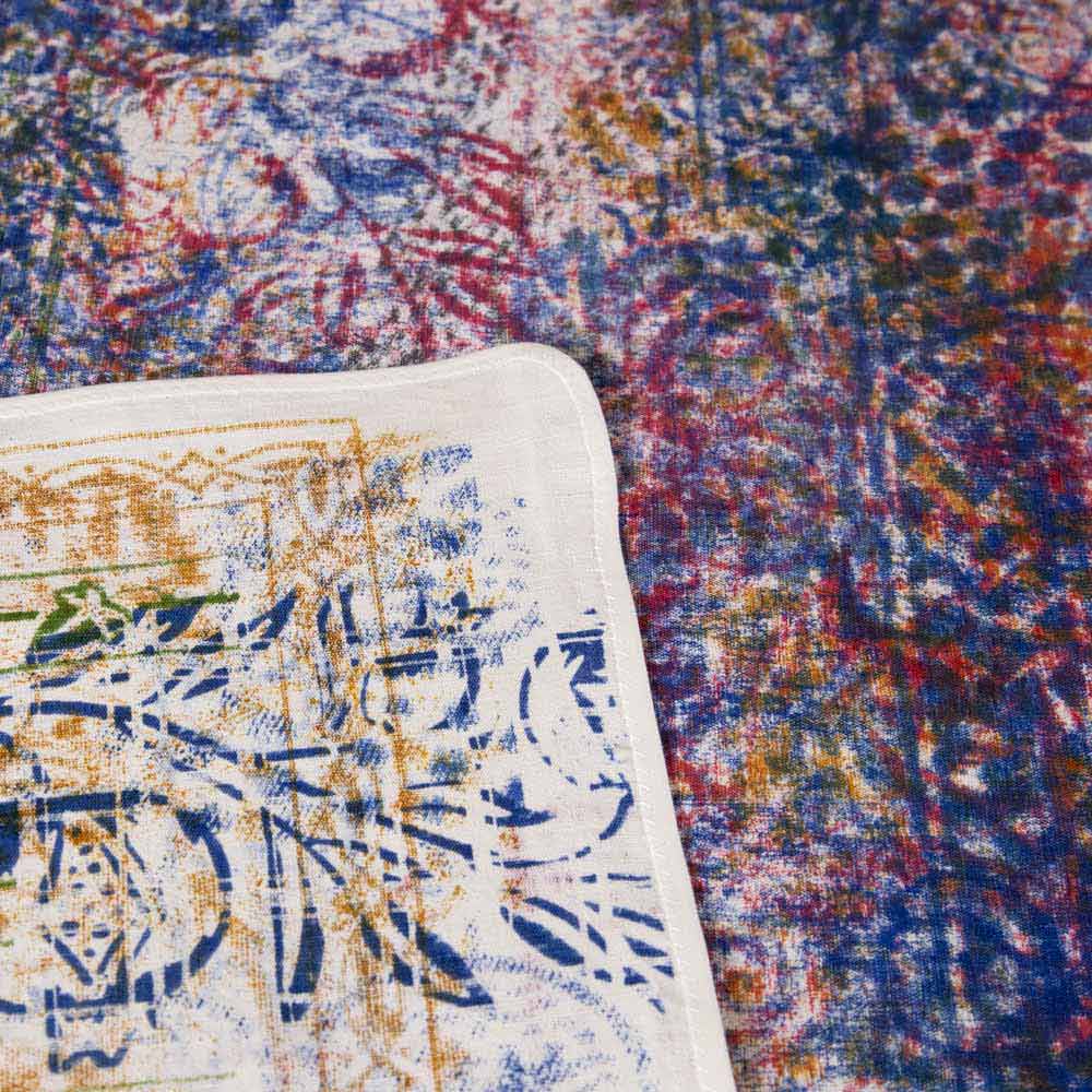 Podczas faz drukowania kolor jest częściowo przenoszony także na tkaninę leżącą pod spodem, która z miesiąca na miesiąc zamienia się w „mimowolne” dzieło sztuki, ale pełne koloru i uroku.