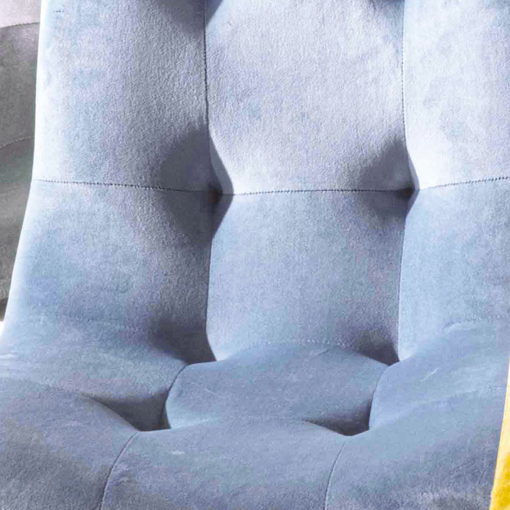 metalu malowanego na czarno . Unikalne kolory i mocny charakter wzbogacają i sprawiają, że prosta i zasadnicza konstrukcja tego nowoczesnego krzesła jest wyjątkowa, pomyślana i zaprojektowana tak, aby w ukierunkowany sposób odpowiadać na każdy rodzaj potrzeb, od najbardziej ekscentrycznych, wymagających koloru i żywości, po najbardziej trzeźwe i dyskretne dla które kolory jak gołębi szary i szary dają doskonałe rozwiązanie. Specyfika pikowanej pracy, która charakteryzuje sesję, wzbogaca następnie wystrój wnętrza, nadając jeszcze silniejszą