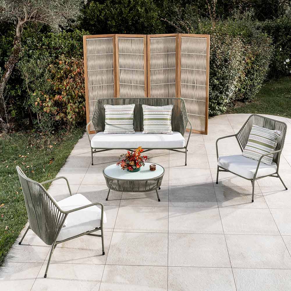 Stolik ogrodowy z aluminium, splotem linowym ROPE+ i szkłem