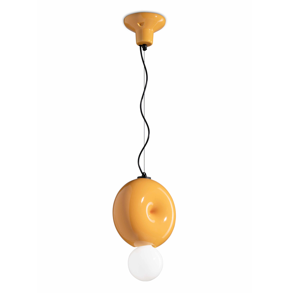 Ta lampa wisząca jest wspaniałym przykładem tego, jak design może podnieść jakość przestrzeni życiowej lub roboczej. Podstawa ceramiczna została wymodelowana z dbałością odzwierciedlającą kunszt włoskich rzemieślników . Projekt jest nowoczesny, ale z nutą nostalgii, dzięki czemu jest idealny dla tych, którzy kochają połączenie nowoczesności i ciepła retro.