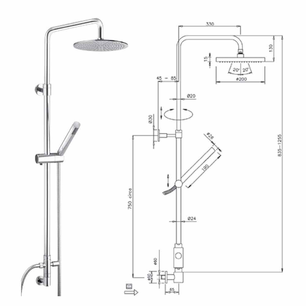 - kolumna prysznicowa z chromowanego mosiądzu o przekroju okrągłym;