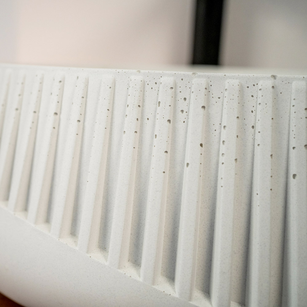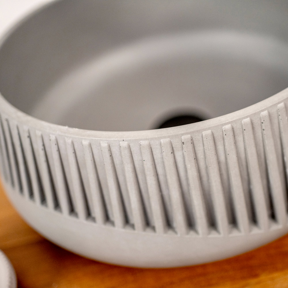 Ta umywalka nablatowa , idealna dla miłośników stylu Urban Cottage lub Industrial, to rzeźba i funkcja w jednym obiekcie. Jego esencja wyrażana jest poprzez zewnętrzne mikropory i cieniowanie, autentyczne sygnatury użytego cementu. Zewnętrzne wykonanie z precyzyjnymi grawerami dodaje materialnego akcentu. Dostępny w dwóch wykończeniach , ten zlew jest wyrazem stylu dla odważnych, którzy chcą się wyróżniać.