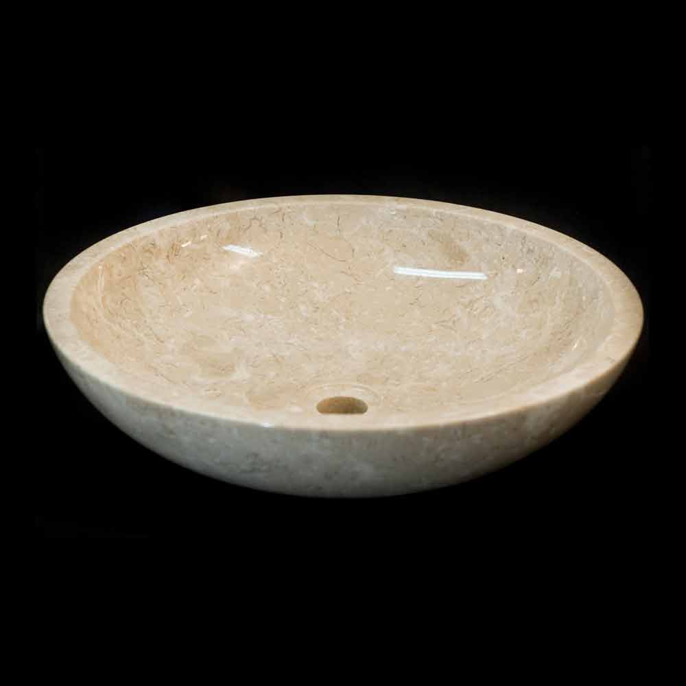 Okrągła umywalka nablatowa z kamienia naturalnego biała Ziva