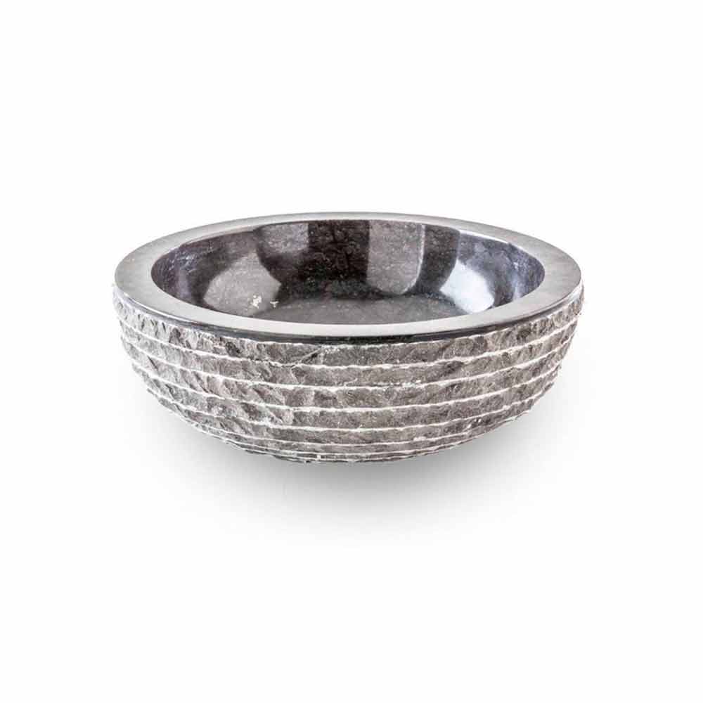 Ręcznie wykonany zlew z marmuru z kamieniołomów na południe od Mount Merapi. Polerowany wewnętrznie i na górnej krawędzi, surowy, obrobiony nożem i dłutem z zewnątrz. Materia ukazuje się i pozwala dotknąć, jaka jest i jak może się stać!