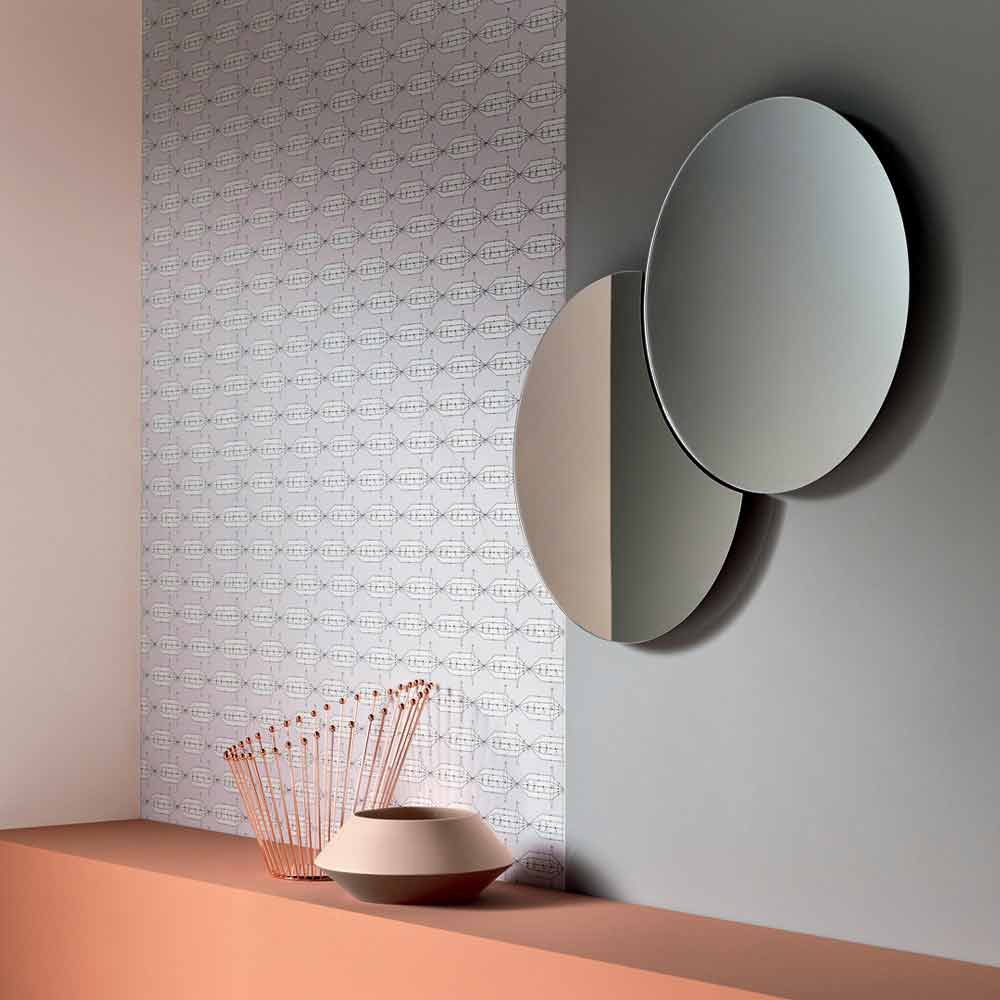 Okrągłe lustro ścienne w nowoczesnym stylu z obrotowym satelitą, wykonane ręcznie we Włoszech.