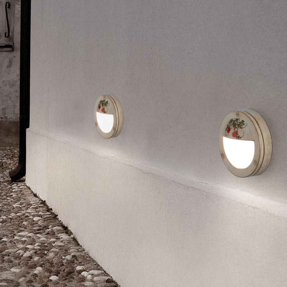 Okrągły kinkiet zewnętrzny z ręcznie malowanego aluminium w kwiaty, wyprodukowany we Włoszech przez Ferroluce.
