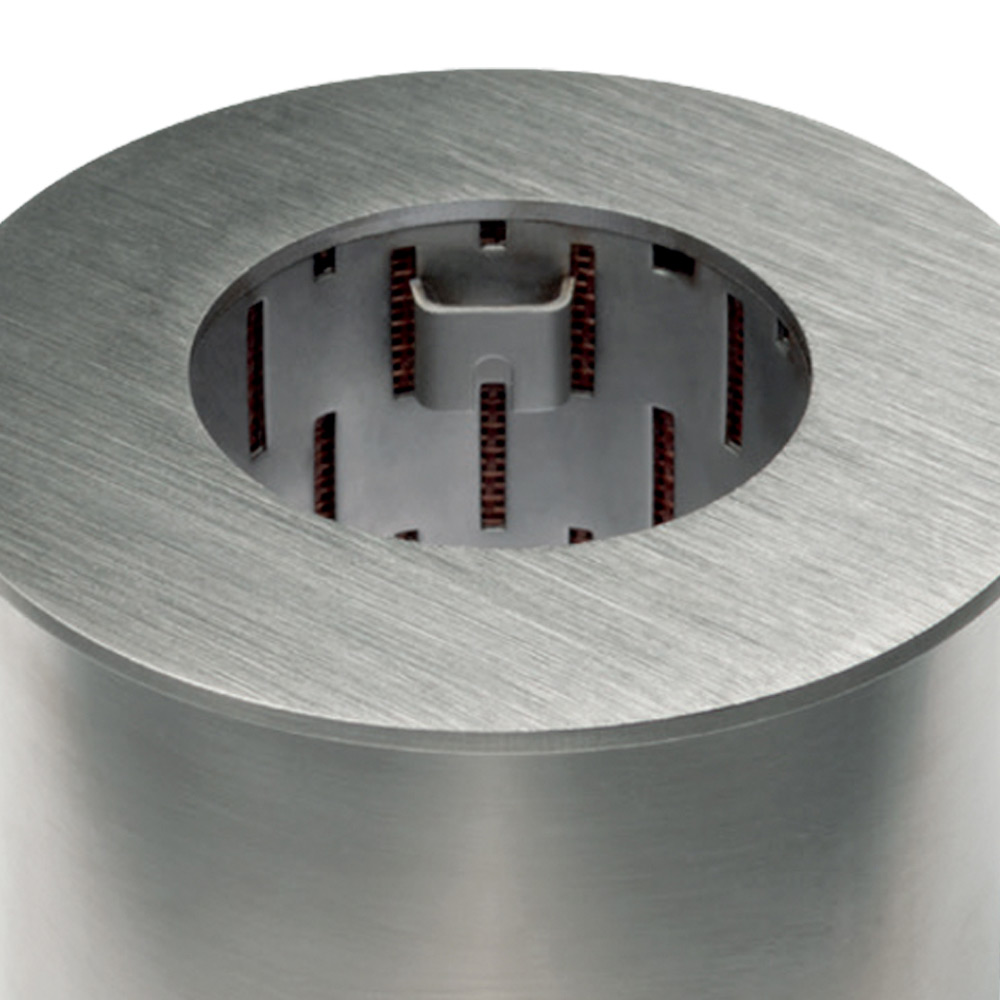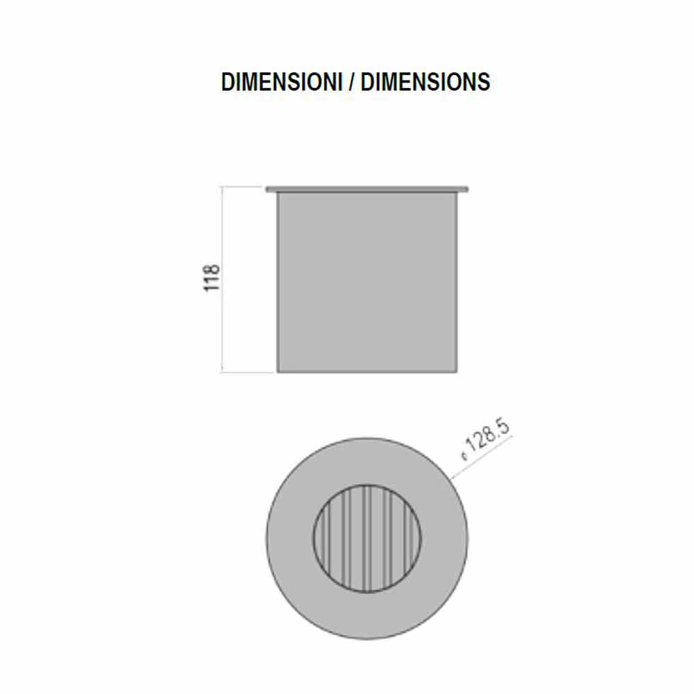 Zaprojektowany, okrągły, wbudowany palnik na bioetanol do kominka, wyprodukowany we Włoszech.