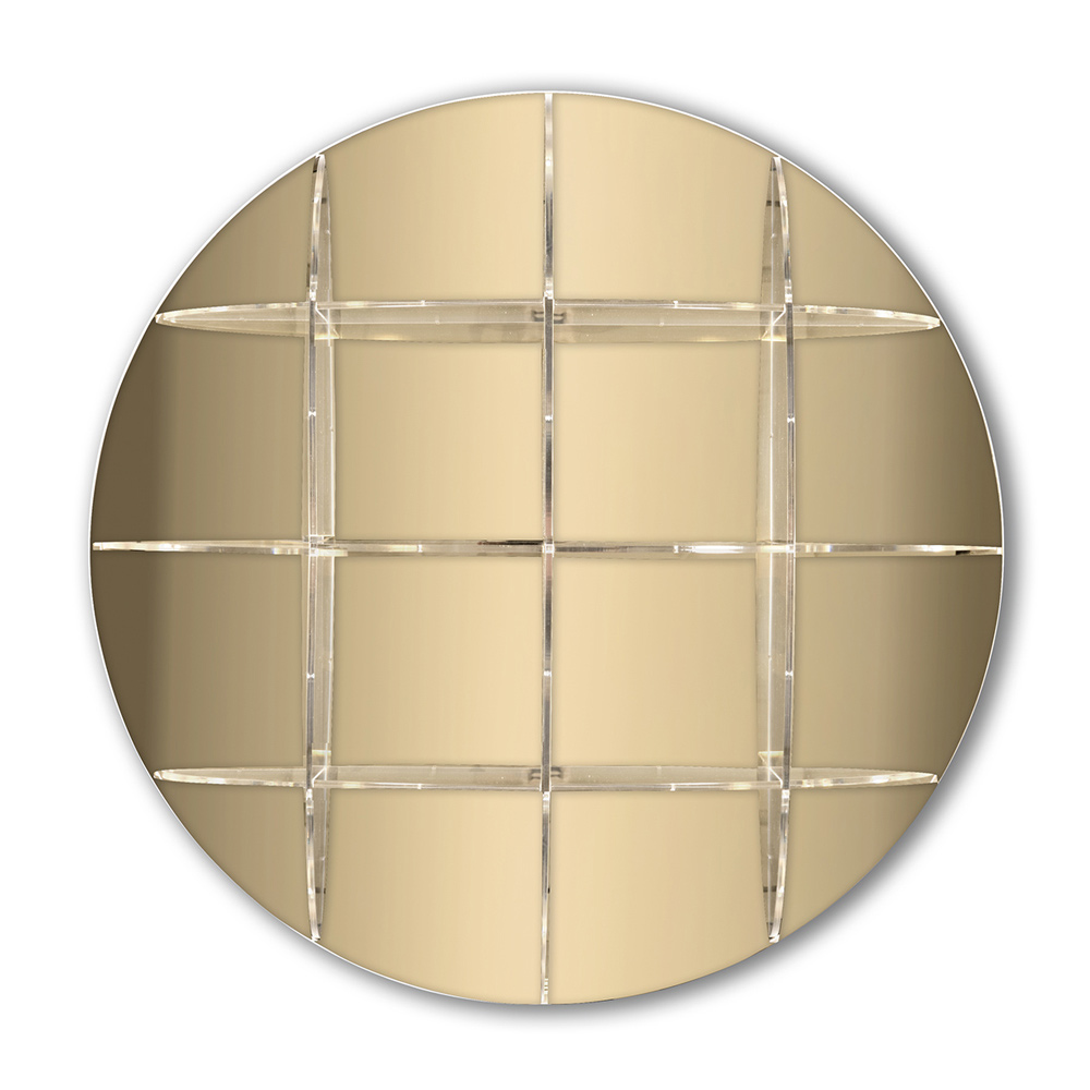 Okrągły regał ścienny ze złotego lub srebrnego pleksi Made in Italy.