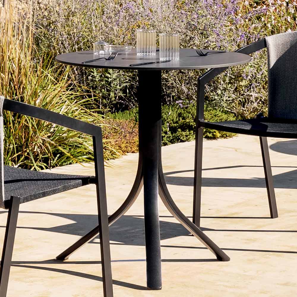 Okrągły stół barowy na zewnątrz z rozkładaną konstrukcją z aluminium i HPL w 2 wykończeniach, wyprodukowany we Włoszech.