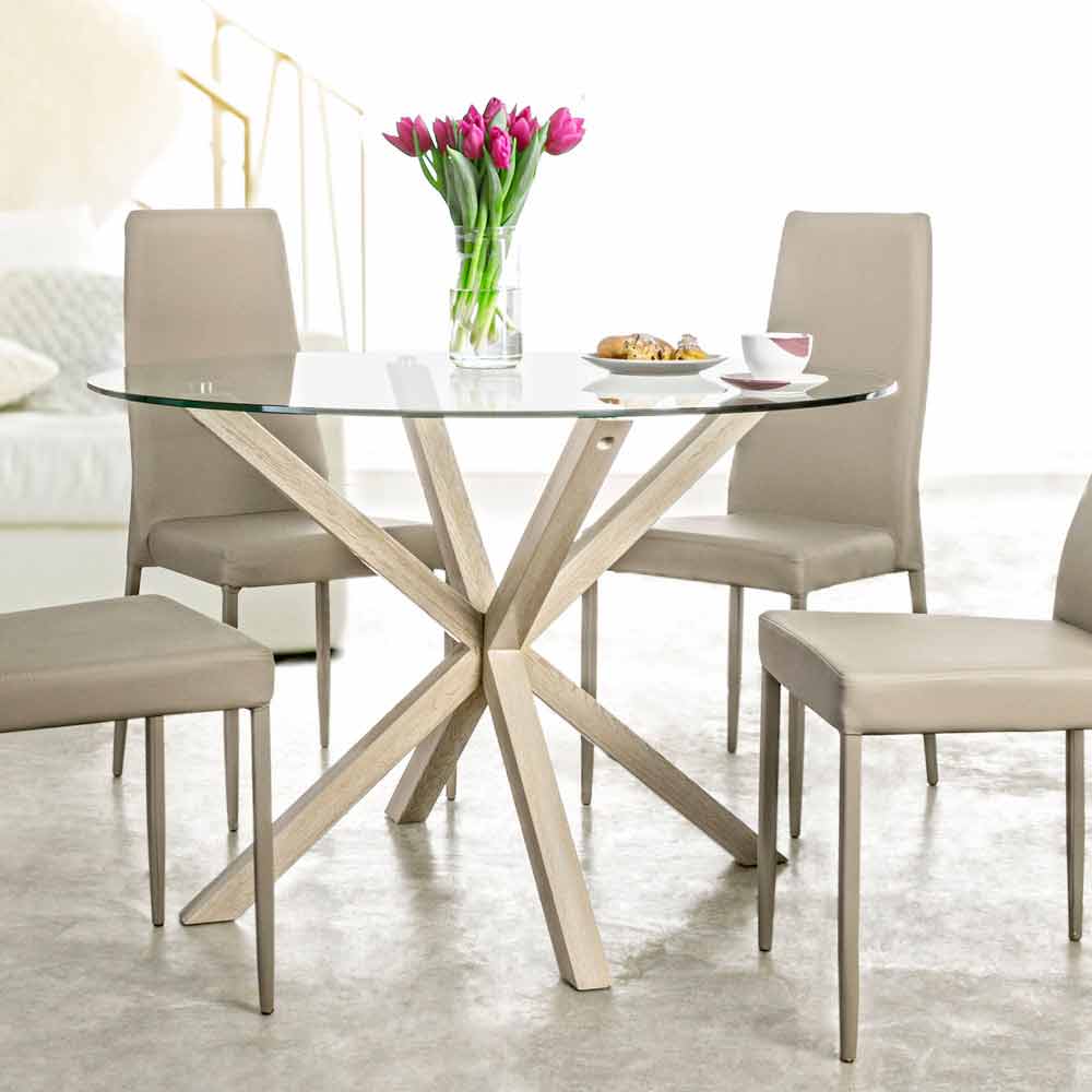 Okrągły stół do jadalni Adamo z szklanym blatem, design