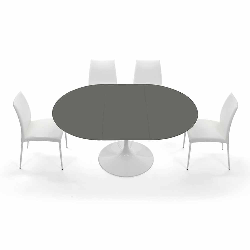 Stół do jadalni wyprodukowany we Włoszech z okrągłym, rozkładanym blatem Fenix (grubość 20 mm) i podstawą z odlewu aluminiowego w kolorze białym, błyszczącym. Ze spotkania wysokiej jakości surowców z ekskluzywnym i rewolucyjnym designem rodzi się dodatek meblowy o nowoczesnej duszy , który uzupełnia styl każdego otoczenia, wnosząc ze sobą innowację i osobowość . Funkcjonalność zwiększa jego funkcjonalny blat , który dzięki wysuwaniu zewnętrznemu o 50 cm może osiągnąć długość 170 cm, dzięki czemu pomieści aż 8 osób, a po złożeniu zajmuje mniejszą przestrzeń. Jego estetykę charakteryzuje natomiast blat fenix, który dzięki zastosowaniu innowacyjnych żywic oferuje odporną, przyjemną w dotyku i wyjątkowo nieprzejrzystą powierzchnię , elementy, które oprócz zwiększenia funkcjonalności stołu podkreślają i dopełniają projekt nadając oryginalny i elegancki charakter .