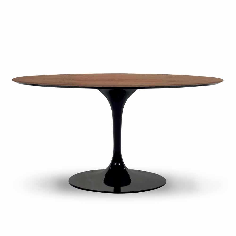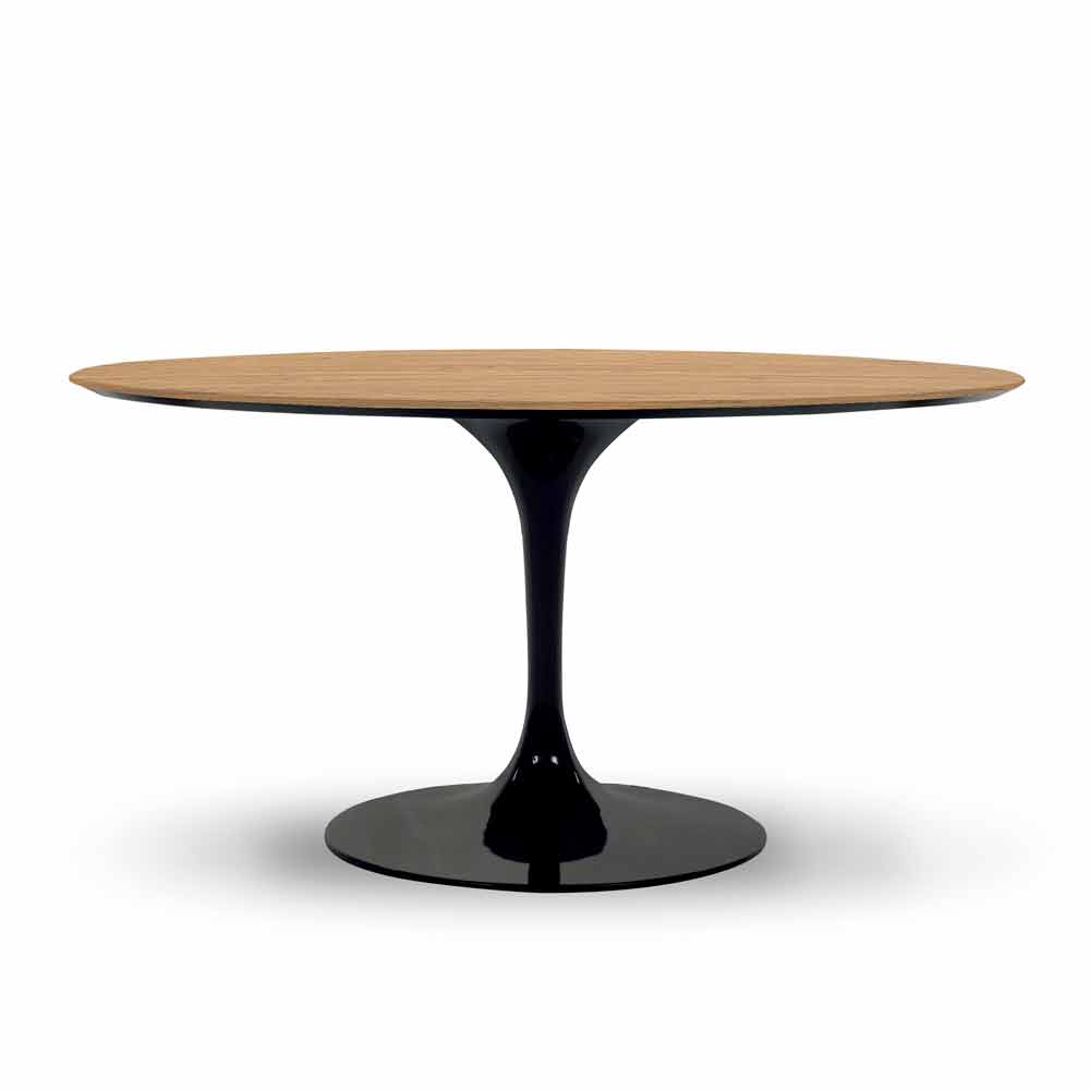 Luksusowy stół jadalny z okrągłym blatem wykonanym we Włoszech z drewna i aluminium.