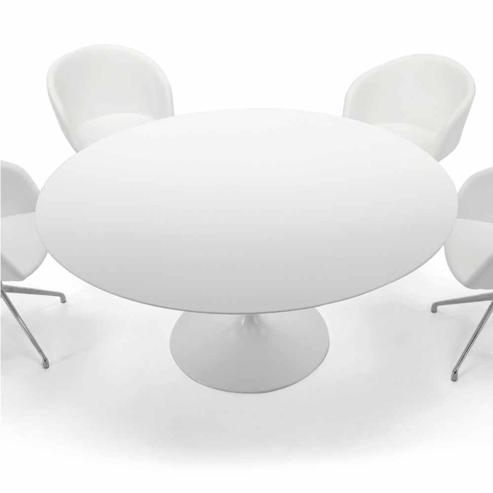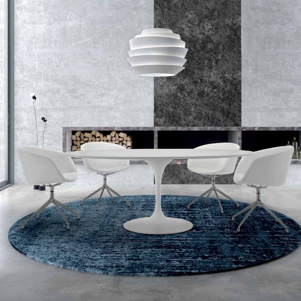 Nowoczesny okrągły stół Dollars wyraża silną osobowość i idealnie nadaje się do mebli o różnych odniesieniach stylistycznych. Wykonane ręcznie we Włoszech z doskonałej jakości materiałów i w 100% wyprodukowane we Włoszech. Charakteryzuje się malowanym blatem z płynnego laminatu(grubość 25mm)oraz podstawa z odlewanego aluminium lakierowanego w kolorze białym lub błyszczącym czarnym.