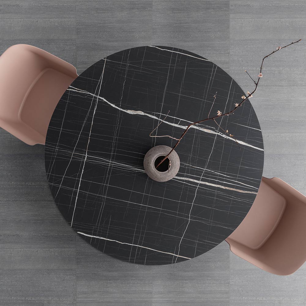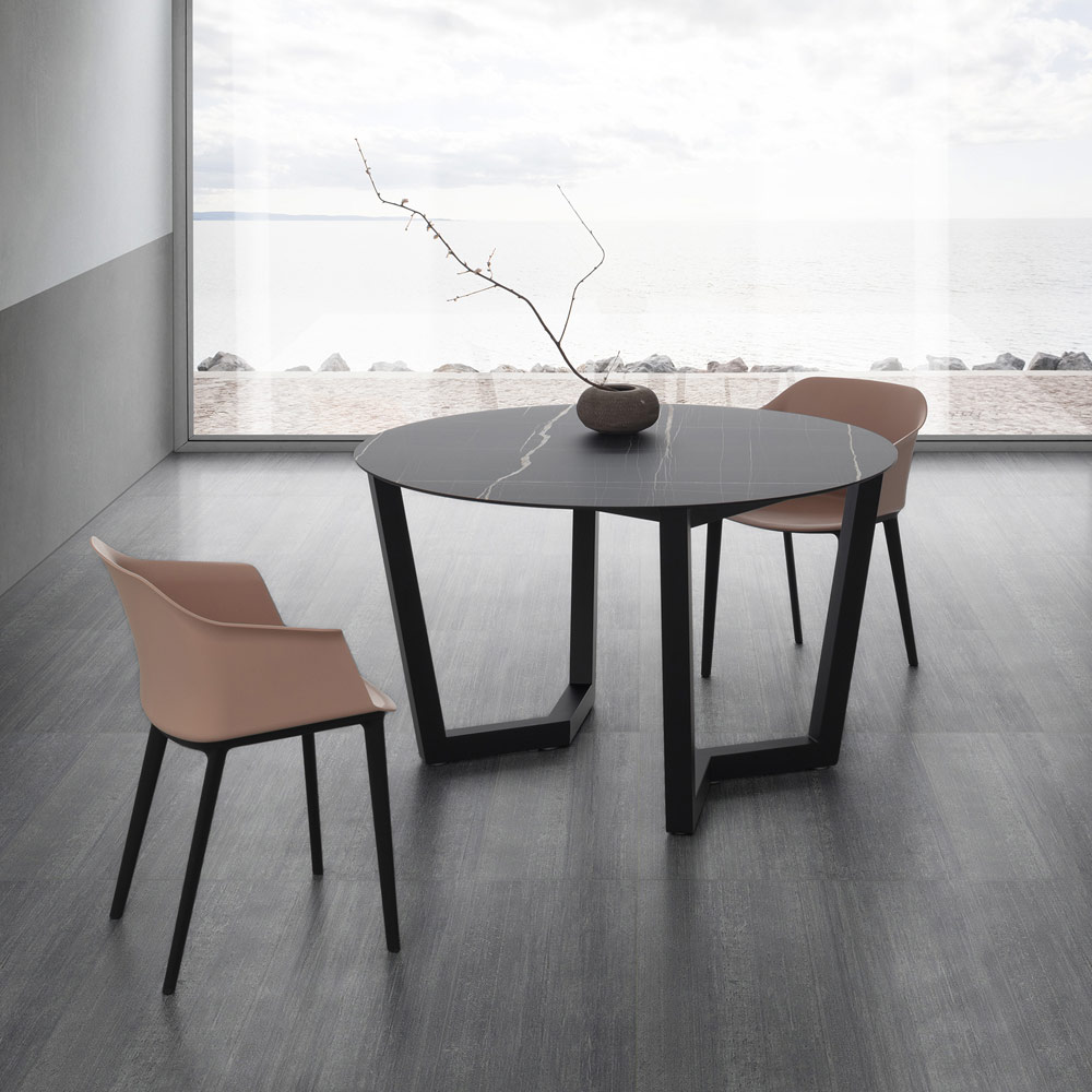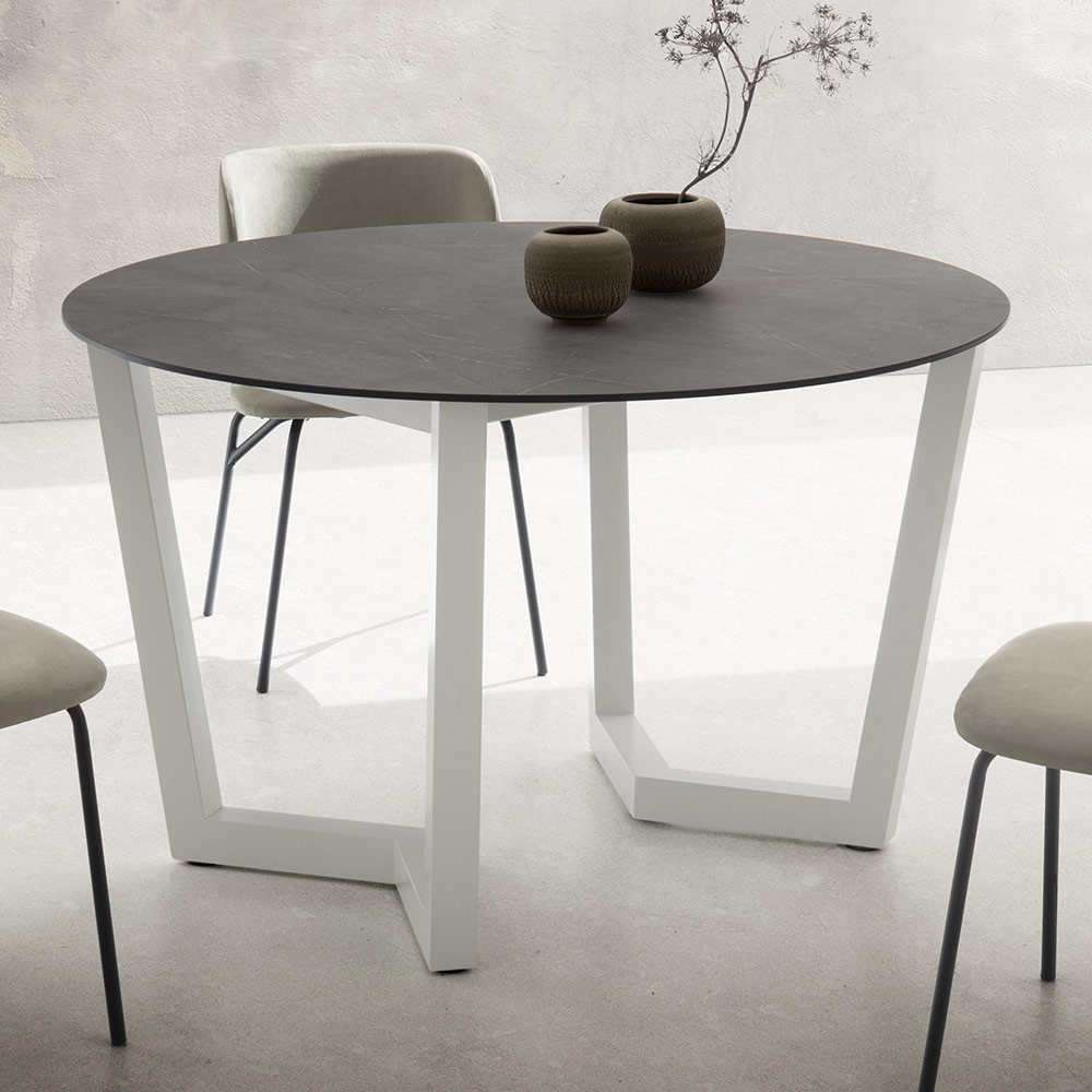 Okrągły stół kuchenny z warstwowym blatem hpl Made in Italy.