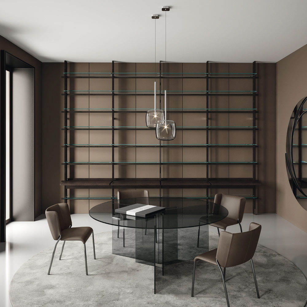 Stół do jadalni w całości wykonany z ultraodpornego szkła z okrągłym blatem . Dopełnienie o wyrafinowanym charakterze, które pochodzi z procesu produkcji 100% Made in Italy dzięki wykwalifikowanym rzemieślnikom, ekspertom w obróbce szkła, pojedynczemu materiałowi, który ożywia cenny designerski stół.