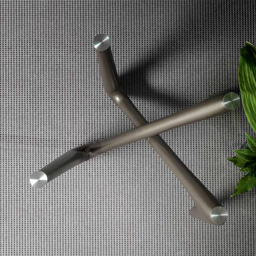 Jego osobliwości jest dynamiczny i innowacyjny wizerunek, zarówno pod względem estetyki, jak i funkcjonalności: struktura przeplata się, lekko podpierając blat, nadając mu rzeźbiarski i wyrafinowany wygląd.