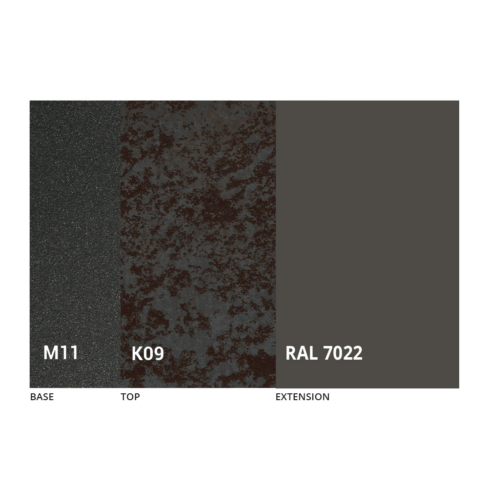 wytłoczoną metalową konstrukcją malowaną grafitem i okrągłym