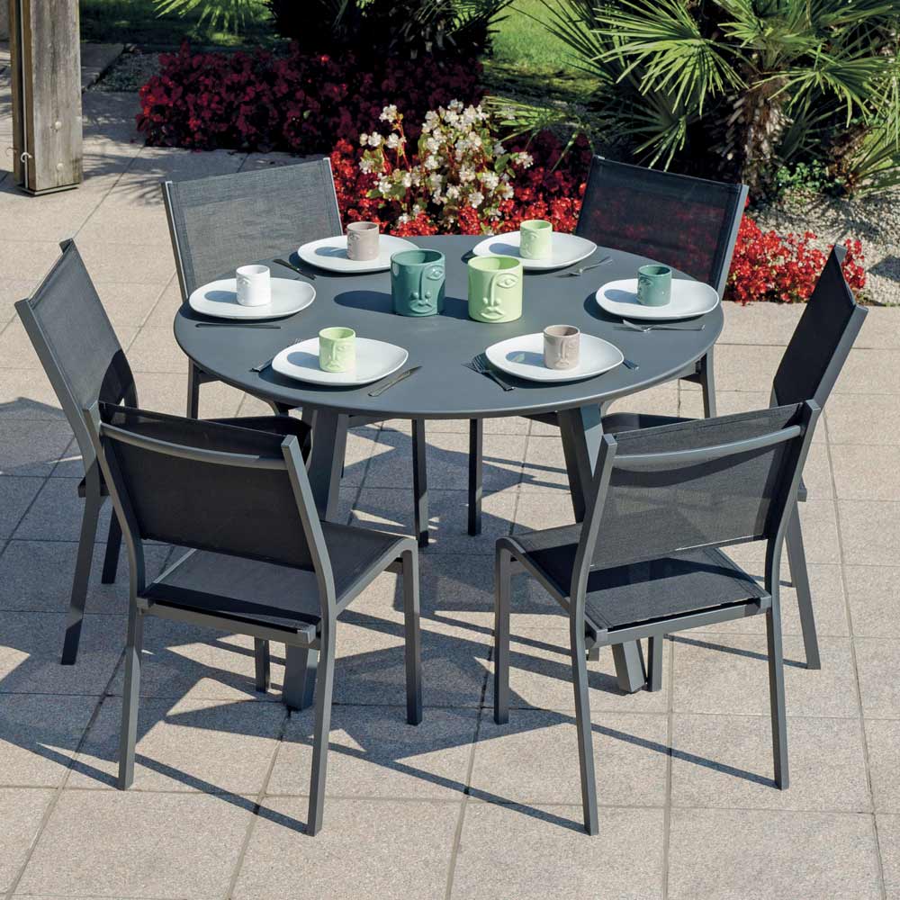 Ten okrągły stół to idealne połączenie nowoczesnego designu i funkcjonalności , idealne do eleganckiego umeblowania każdej przestrzeni na świeżym powietrzu. Dzięki średnicy 120 cm oferuje przestronną i zachęcającą powierzchnię, idealną na lunch, aperitif lub chwile relaksu na świeżym powietrzu.