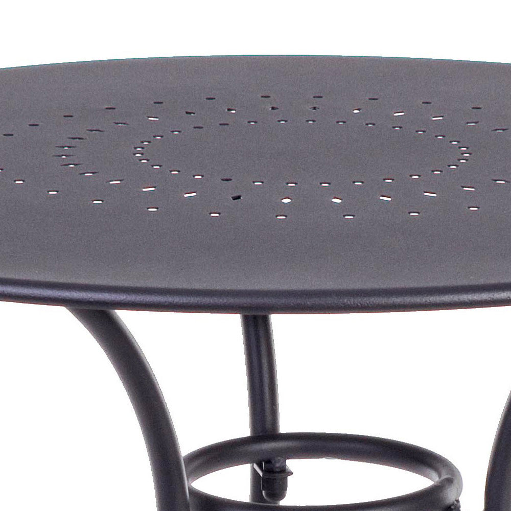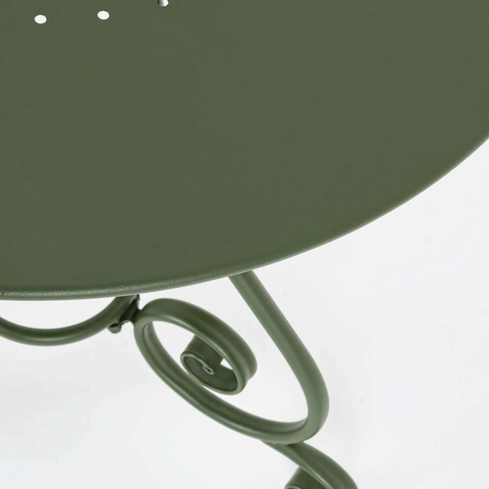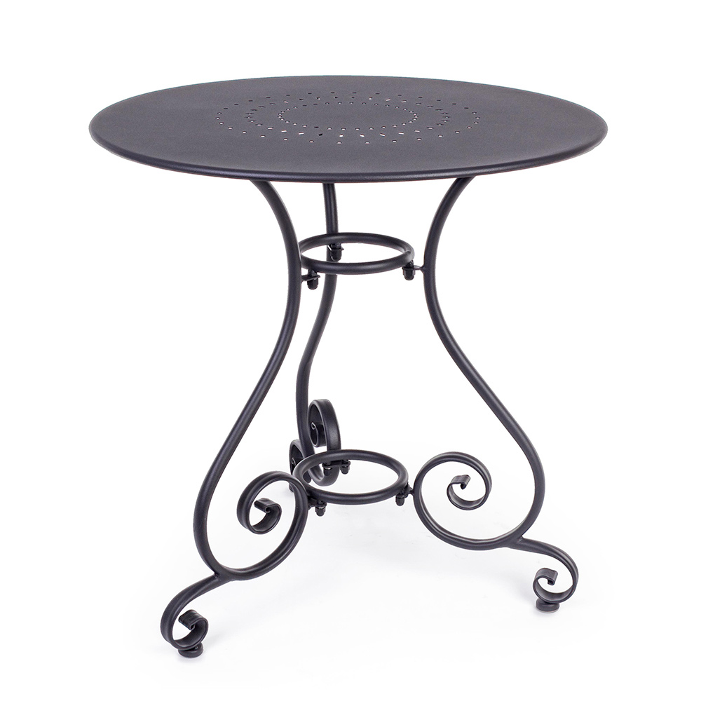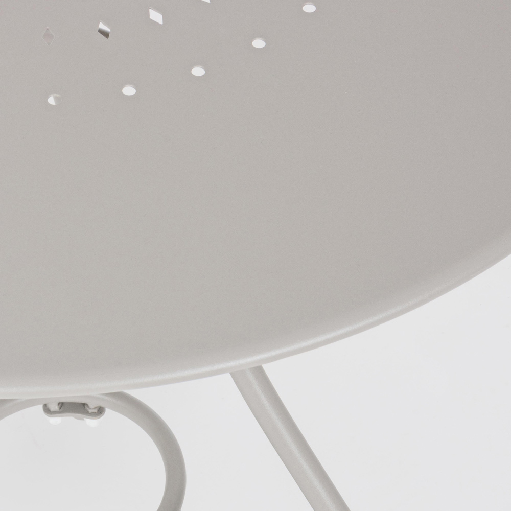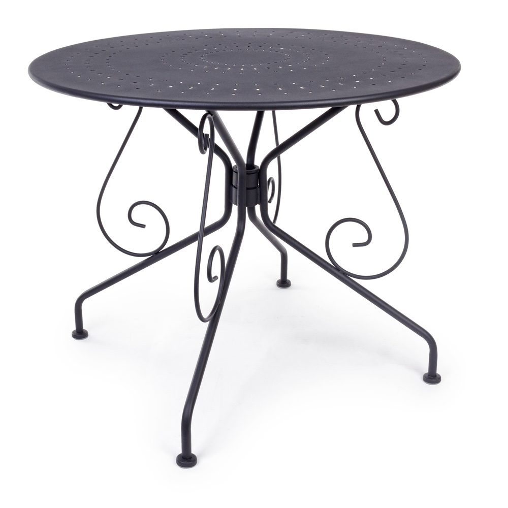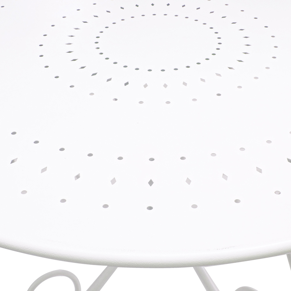 Okrągły stół na zewnątrz w stylu Shabby Chich wykonany z malowanej stali i dostępny w dwóch różnych rozmiarach.