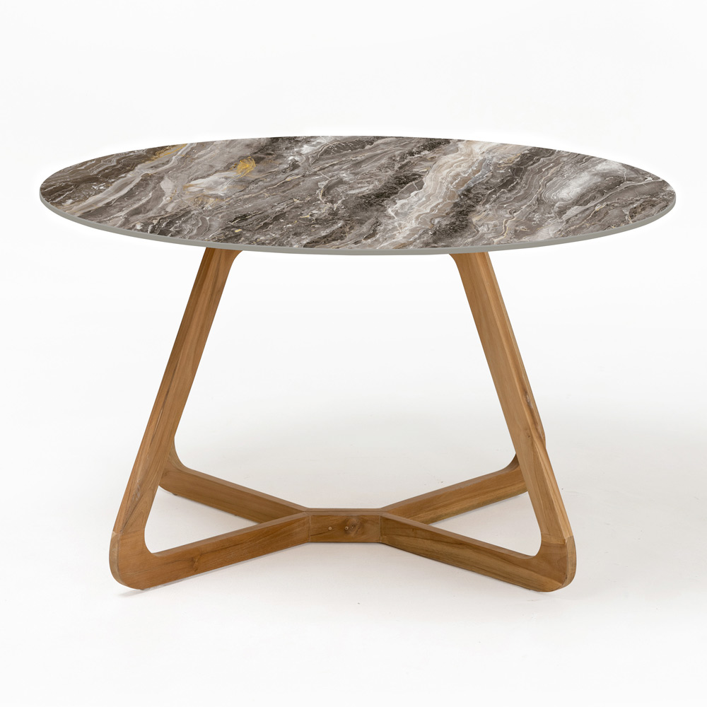 Okrągły stół ogrodowy z drewna i ceramiki, wyprodukowany we Włoszech