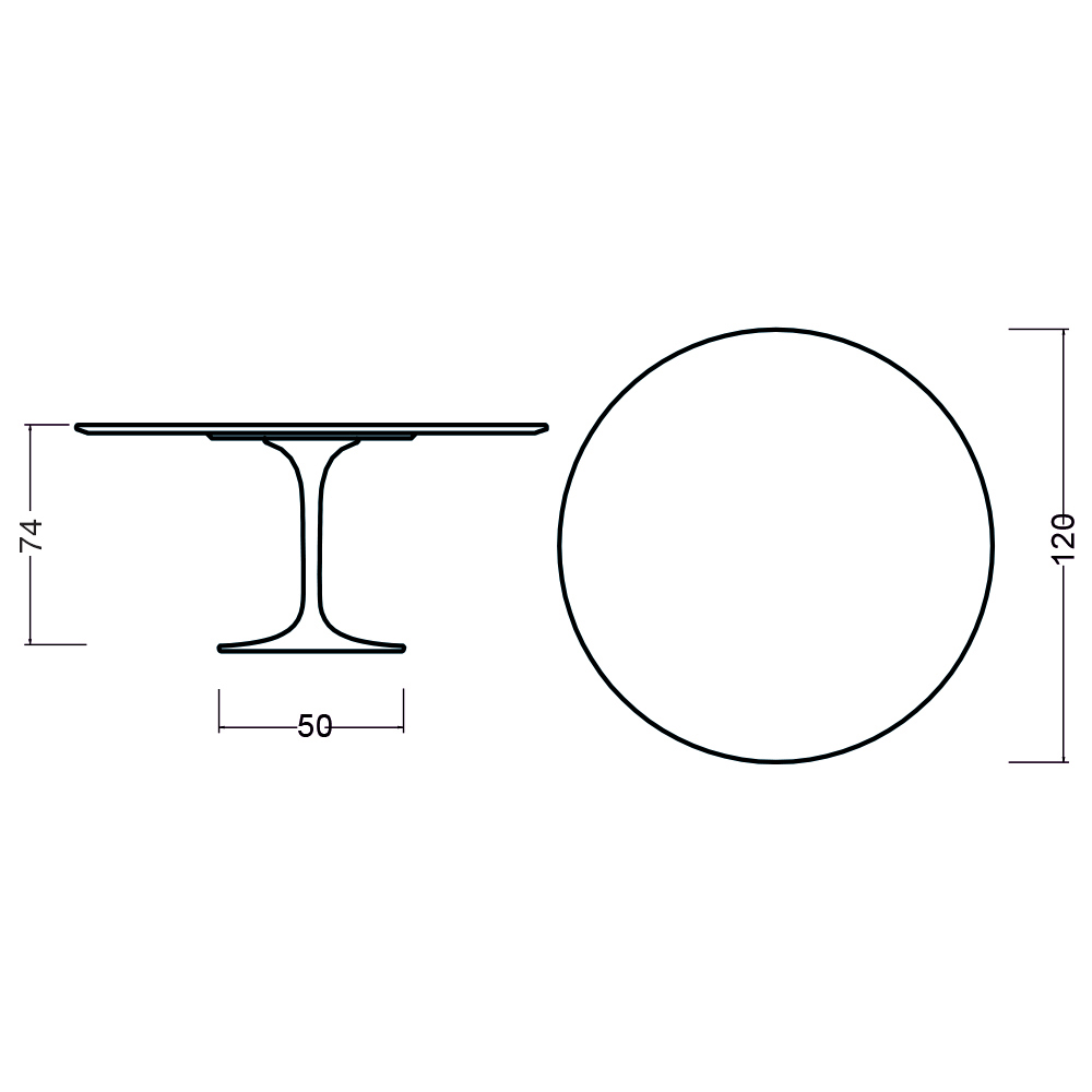 - Średnica blatu 120 x wysokość 74 cm / Średnica podstawy 50 cm