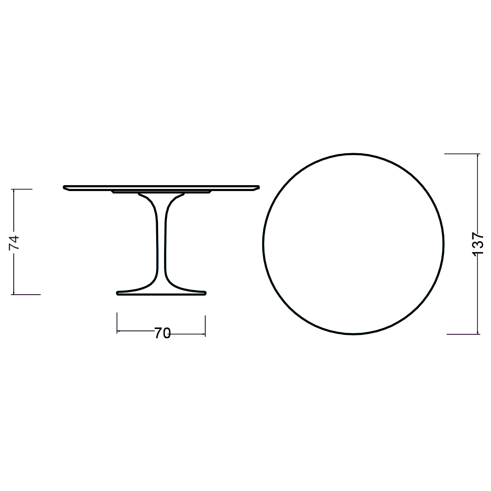 - Średnica blatu 137 x wysokość 74 cm / średnica podstawy 70 cm