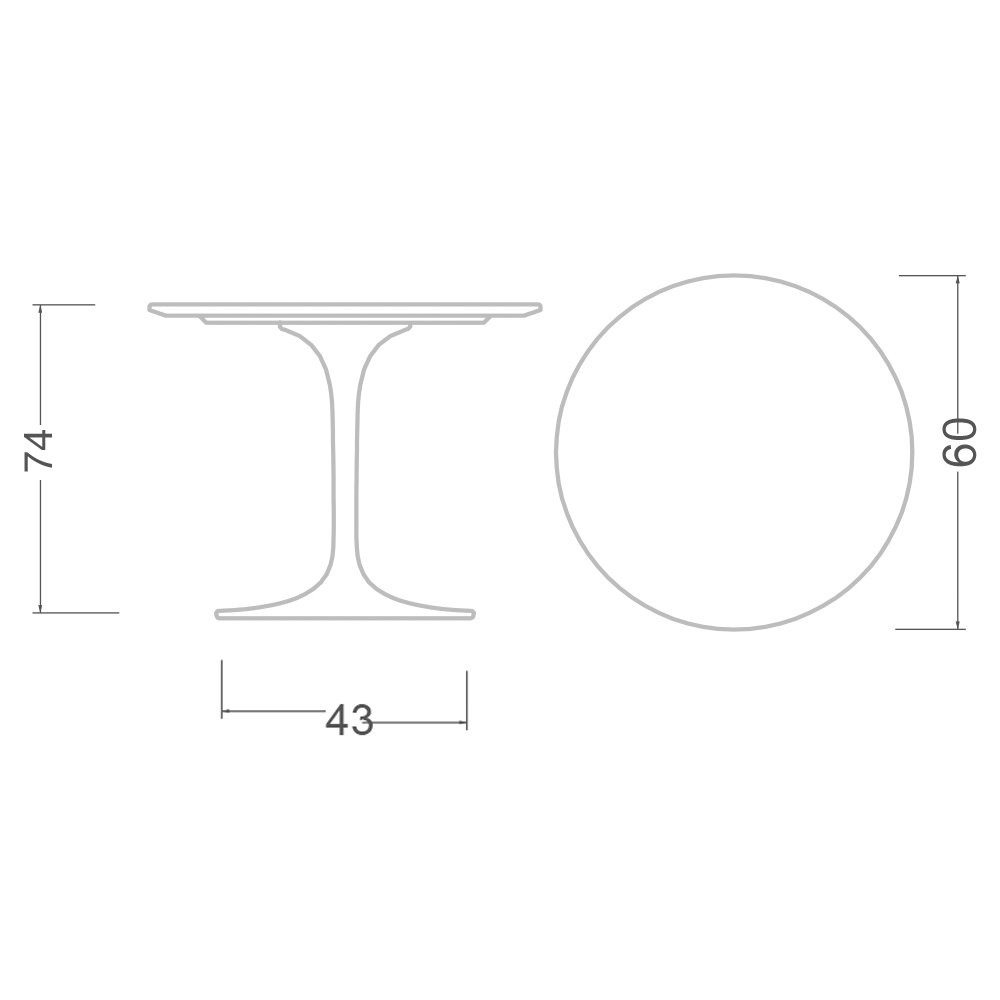 Dostępne podstawowe wykończenia: Dostępne rozmiary:- Średnica blatu 60 x wysokość 74 cm;