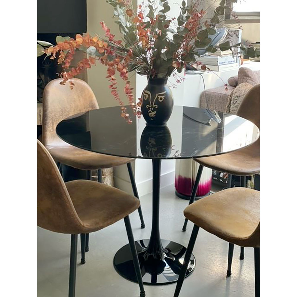 smak i osobowość w salonie i kuchni. Czarny blat z marmuru marquinia i polerowana aluminiowa podstawa zapewniają