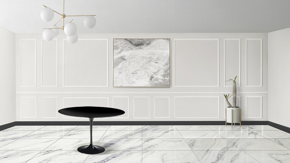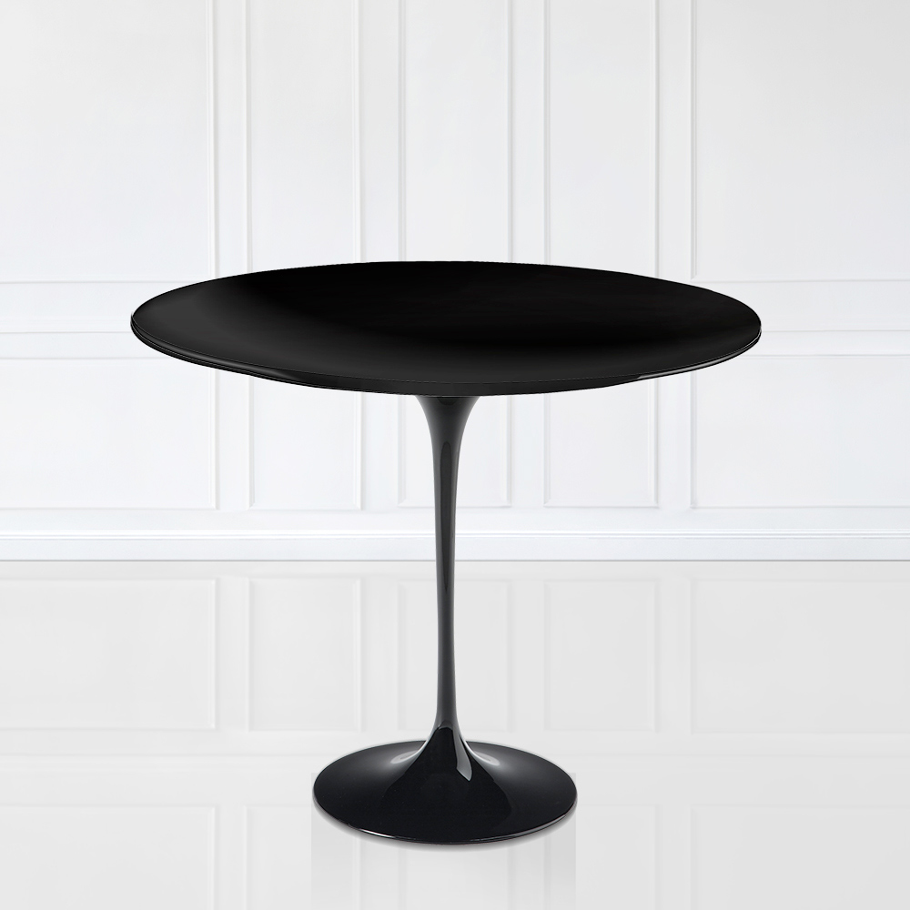 Stół do jadalni w całości wyprodukowany we Włoszech z okrągłym blatem z czarnego płynnego laminatu i podstawą z czarnego polerowanego aluminium . Uwodzicielski i wyrafinowany design tego elementu pozwala urządzić ze smakiem i wyrafinowaniem każdy rodzaj salonu i kuchni dzięki okrągłemu kształtowi, który nadaje pomieszczeniu odrobinę oryginalności, zapewniając świeżość i liniowość stylu. Bardzo ważne jest, aby starannie wybrać stół do jadalni, ponieważ jest on umieszczony w najcieplejszym i najbardziej przyjaznym miejscu w domu i musi tworzyć idealne połączenie z otaczającym środowiskiem: wszechstronność tego stołu pozwala zrobić to w dowolnym miejscu. Ten mebel jest idealny do uzupełnienia każdego pomieszczenia dzięki prostym i niezbędnym wykończeniom. Blat z płynnego laminatu i podstawa z polerowanego aluminium sprawiają, że stół jest odpowiedni i funkcjonalny na każdą okazję.
