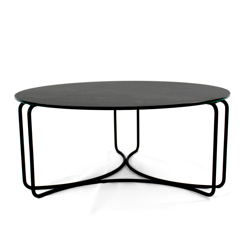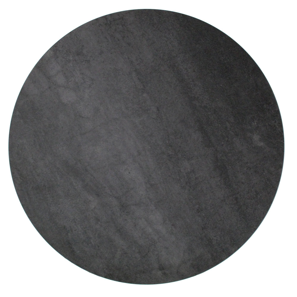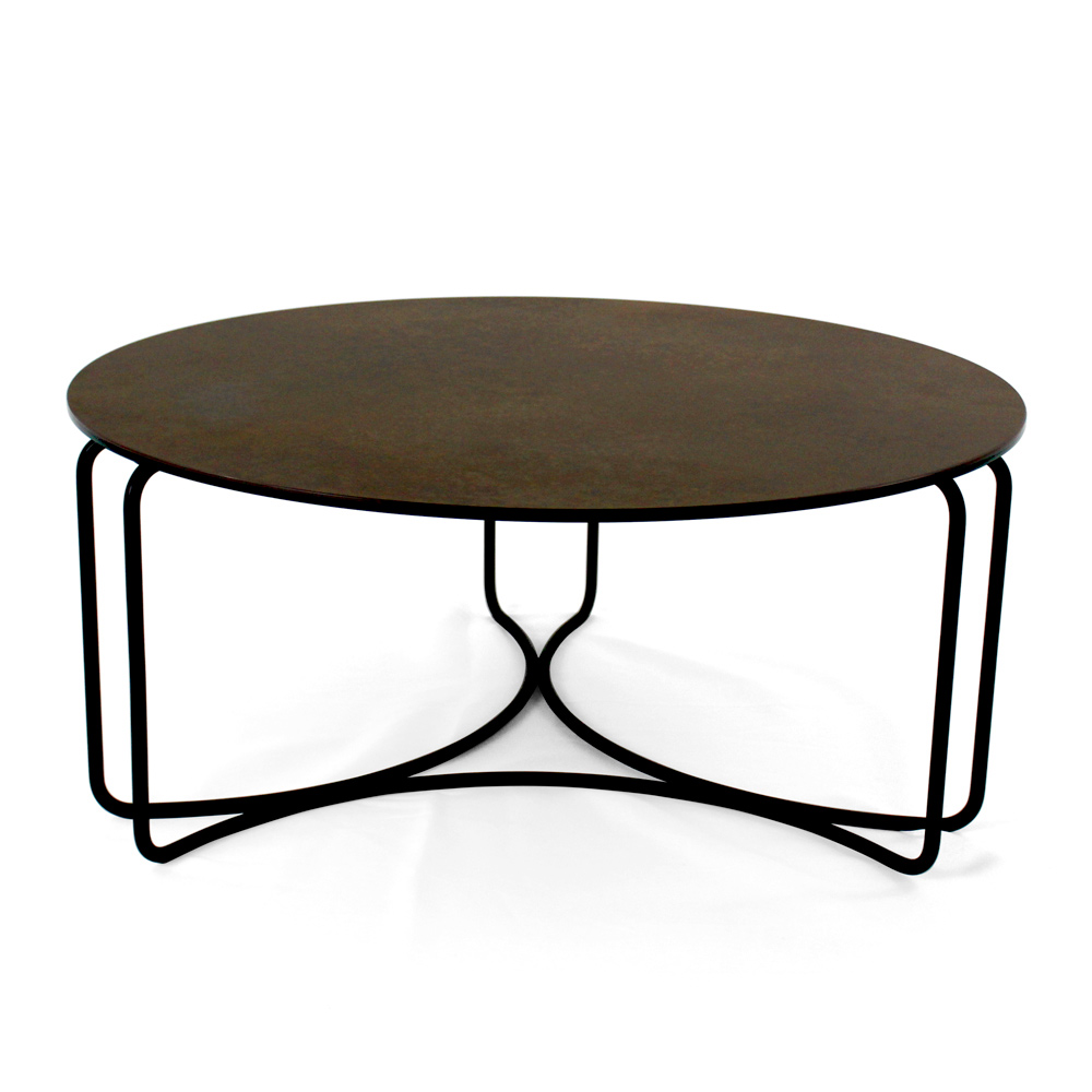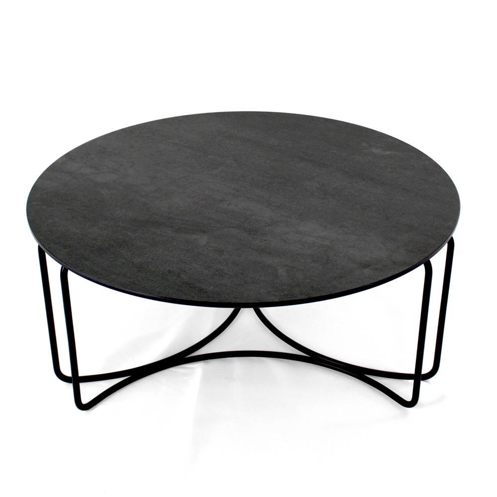 Okrągły stolik kawowy z malowaną stalową podstawą i blat z kamionki porcelanowej.